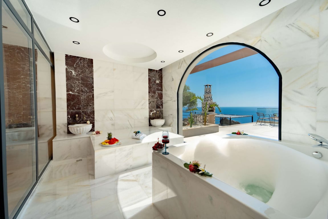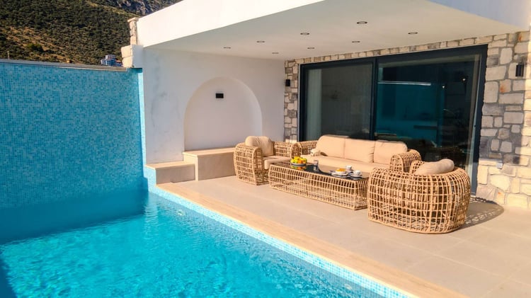 Villa Akbulut 1, Kaş Gökseki bölgesinde konumlanmakta olan, muhteşem deniz ve yeşilliklerle kaplı doğa manzarasına hakim kiralık villalarımız arasında yer almaktadır. Lüks ve modern bir şekilde dizayn edilen villamızda 1 adet yatak odası bulunmakta olup 2 kişiye konaklama imkânı sağlamaktadır. Yatak odasının içerisinde, tüm yılın vermiş olduğu yorgunluğu giderebileceğiniz jakuzi yer almaktadır. Aynı zamanda villamızda sauna ve hamam da bulunmaktadır. Havuz ve havuz terası korunaklı hale getirilen yazlık villamızı, muhafazakâr aileler gönül rahatlığıyla tercih edebilirler. Hayallerinizin de ötesinde keyif dolu bir tatil için Villa Akbulut 1’i tercih edebilirsiniz.