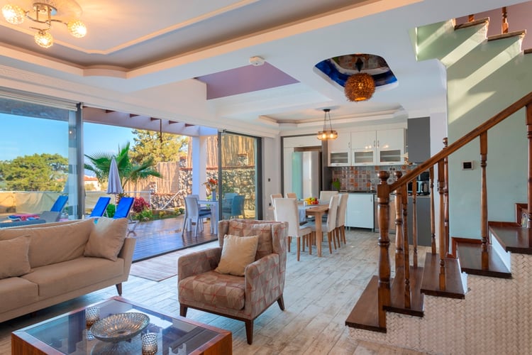 Havuzlu Kiralık Villa Doğa İle İç İçe Fethiye Kiralık Villa Kalabalık Aileler İçin Uygun Villa Muğla Kiralık Villa Jakuzili Balayı Kiralık Villa Balayı Villası Dağ Manzaralı