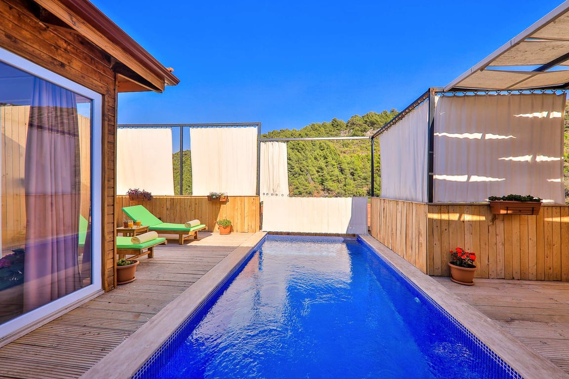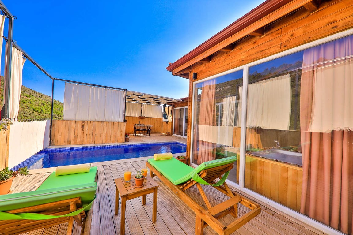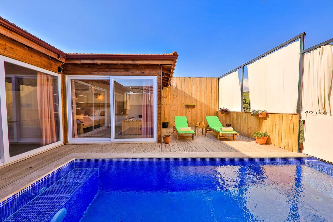Villa Baranda, Kalkan Patara bölgesinde konumlanmakta olan, yeşilliklerle kaplı doğa manzarasına hakim kiralık villalarımız arasında yer almaktadır. Lüks ve modern bir şekilde dizayn edilen villamızda 1 adet yatak odası bulunmakta olup, 2 kişiye konaklama imkanı sağlamaktadır. Yatak odasının içerisinde, tüm yılın vermiş olduğu yorgunluğu giderebileceğiniz jakuzi yer almaktadır. Havuz ve havuz terası korunaklı hale getirilen villamız, özellikle muhafazakar aileler için ideal bir tatil seçeneğidir. Hayallerinizin de ötesinde keyif dolu bir yazlık villada tatil için Villa Baranda’yı tercih edebilirsiniz.