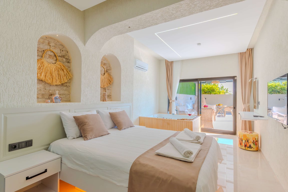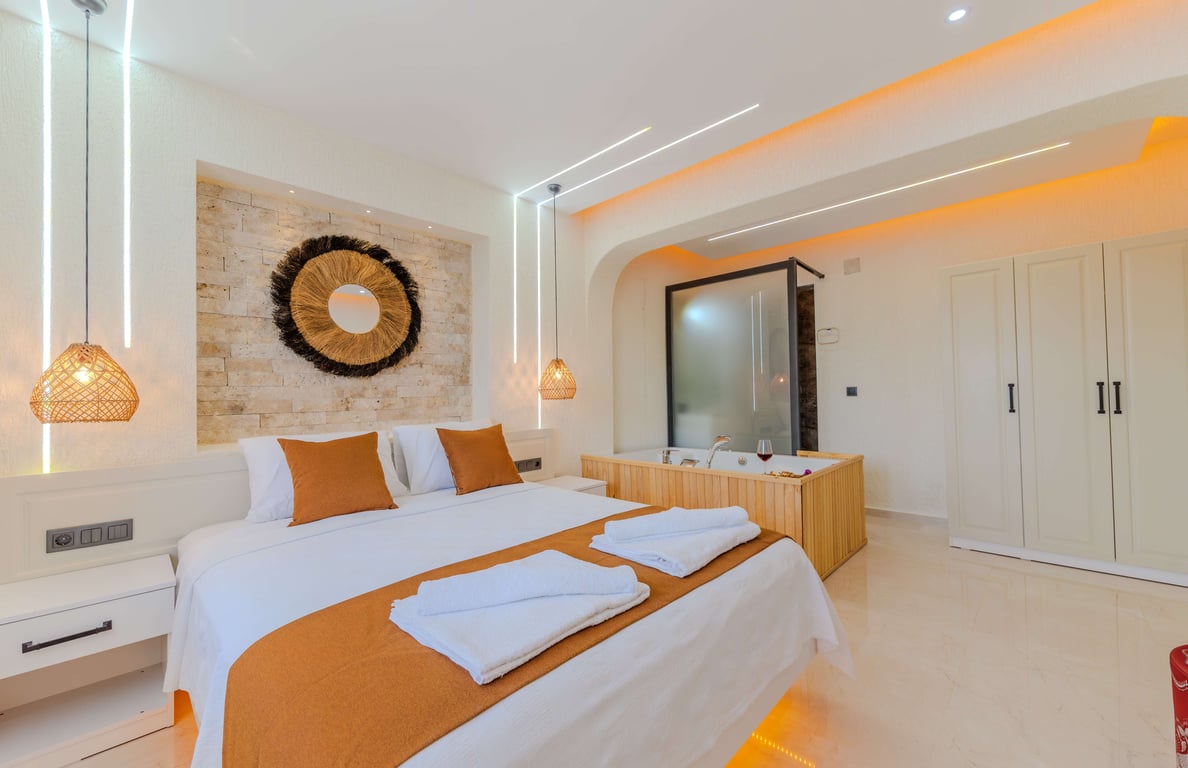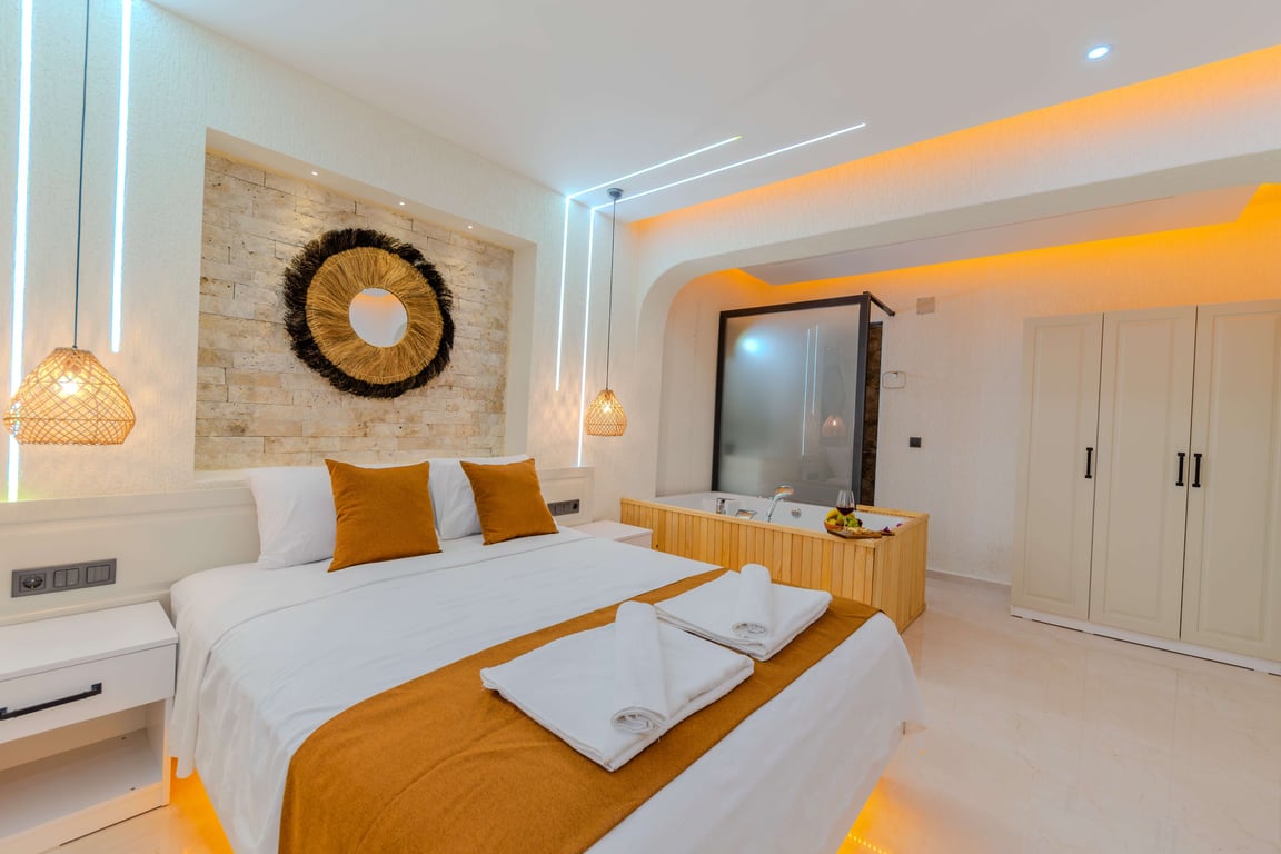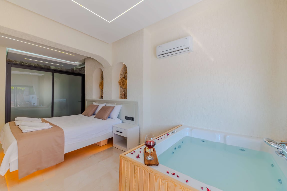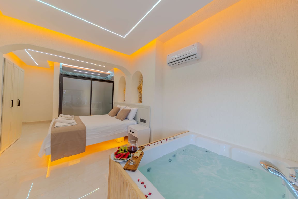 Çift kişilik yatak, banyo/wc, jakuzi bulunmaktadır.