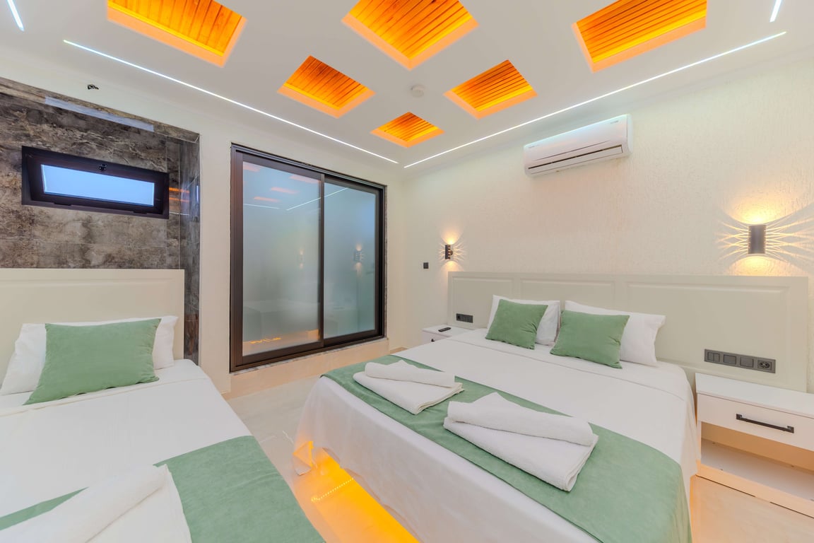Villa Berat Han, Kalkan Kınık bölgesinde konumlanmakta olan, muhteşem deniz ve yeşilliklerle kaplı doğa manzarasına hakim kiralık villalarımız arasında yer almaktadır. Lüks ve modern bir şekilde dizayn edilen villamızda 3 adet yatak odası bulunmakta olup, 6 kişiye konaklama imkanı sağlamaktadır. Yatak odalarından bir tanesinin içerisinde, tüm yılın vermiş olduğu yorgunluğu giderebileceğiniz jakuzi yer almaktadır. Havuz ve havuz terası korunaklı hale getirilen yazlık villamızı muhafazakar aileler gönül rahatlığı ile tercih edebilirler. Hayallerinizin de ötesinde keyif dolu bir yazlık villada tatil için Villa Berat Han’ı tercih edebilirsiniz.