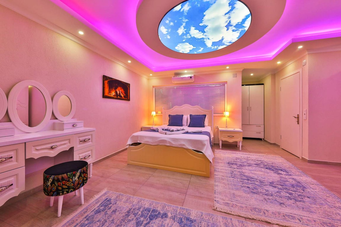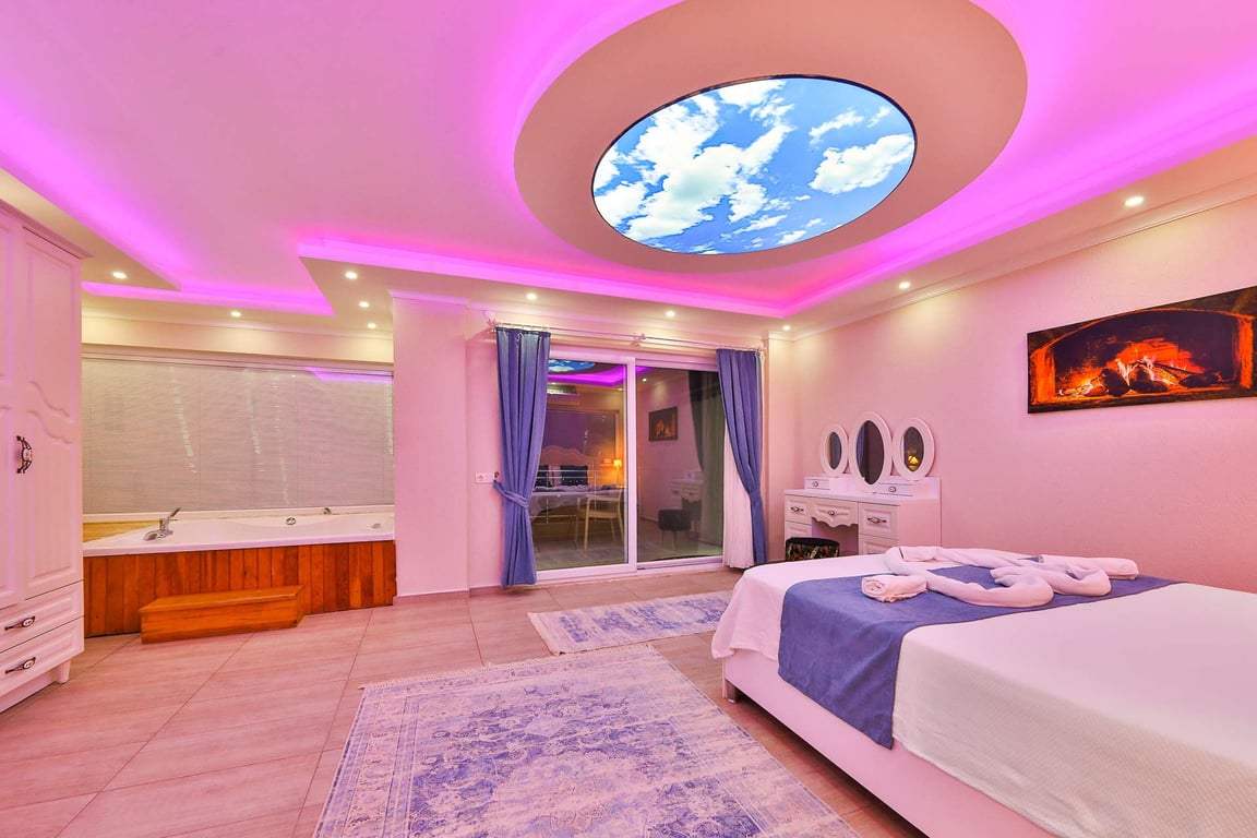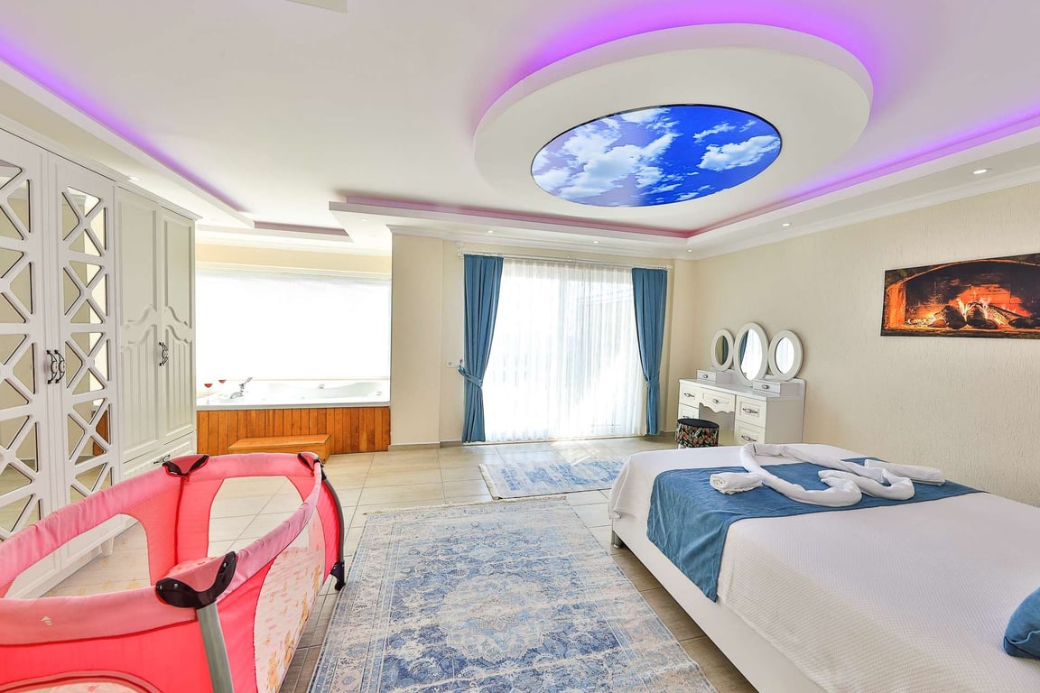 1- Çift kişilik yatak, banyo/wc, jakuzi ve bebek yatağı bulunmaktadır.