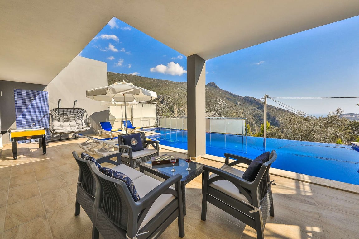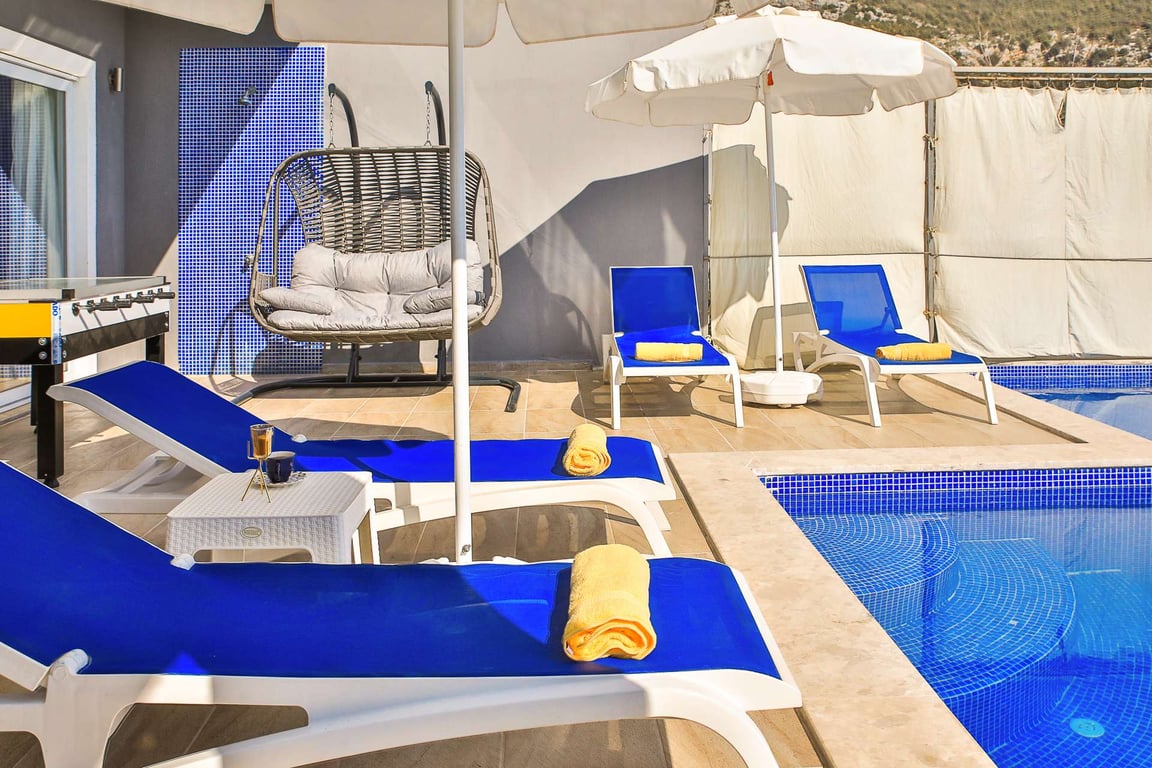 Villa Best, Kalkan İslamlar bölgesinde konumlanmakta olan, yeşilliklerle kaplı doğa manzarasına hakim kiralık villalarımız arasında yer almaktadır. Lüks ve modern bir şekilde dizayn edilen villamızda 2 adet yatak odası bulunmakta olup, 4 kişiye konaklama imkanı sağlamaktadır. Yatak odalarından birinde, tüm yılın vermiş olduğu yorgunluğu giderebileceğiniz jakuzi yer almaktadır. Aynı zamanda villamızda çocuk havuzu da bulunmaktadır. Havuz ve havuz terası korunaklı hale getirilen yazlık villamızı, muhafazakar aileler gönül rahatlığıyla tercih edebilirler.