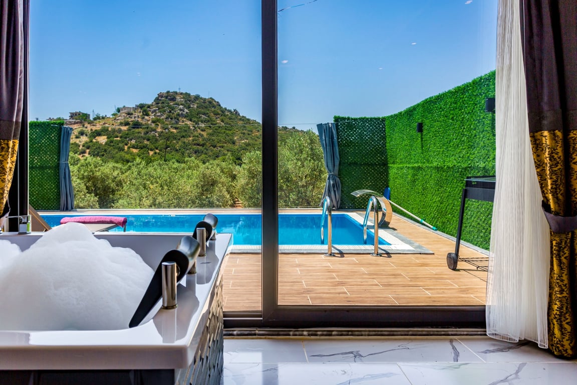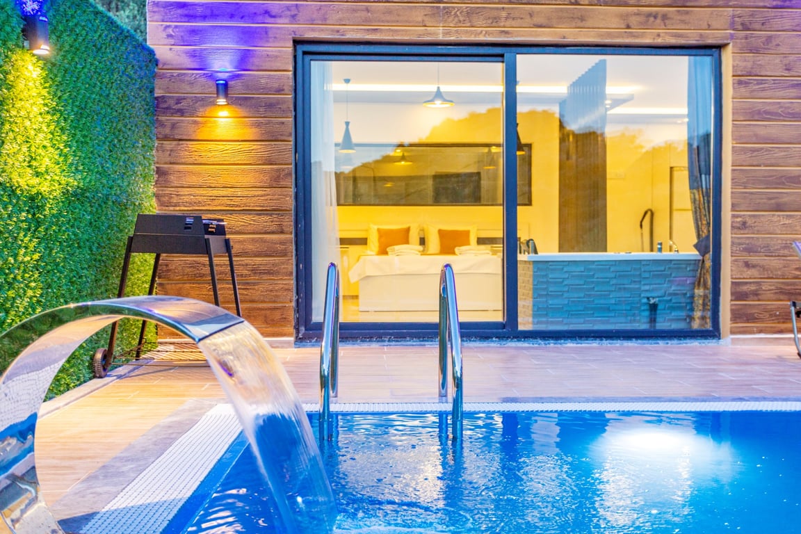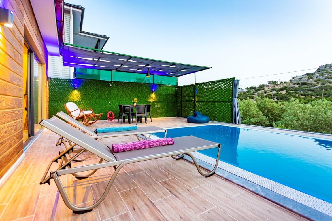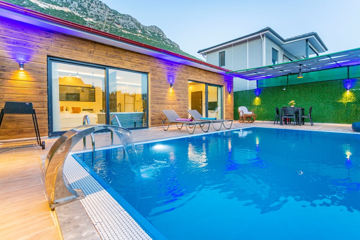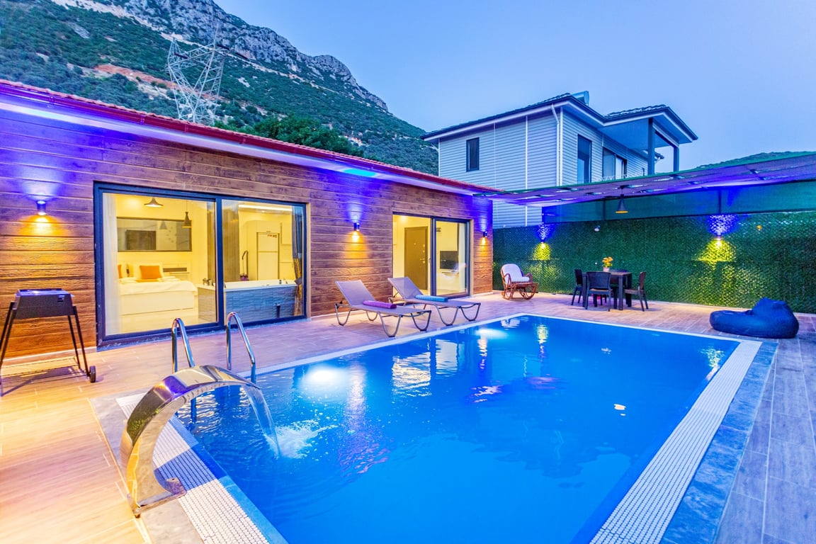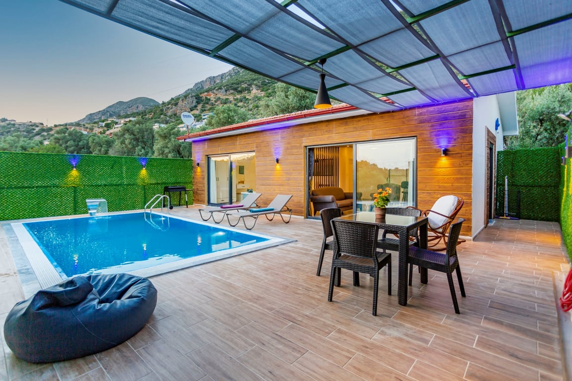 Havuzlu Kiralık Villa Doğa İle İç İçe Muhafazakar Kiralık Villa Kaş Kiralık Villa Antalya Kiralık Villa Jakuzili Balayı Kiralık Villa Muhafazakar Villa Balayı Villası Dağ Manzaralı Kalkan Kiralık Villa
