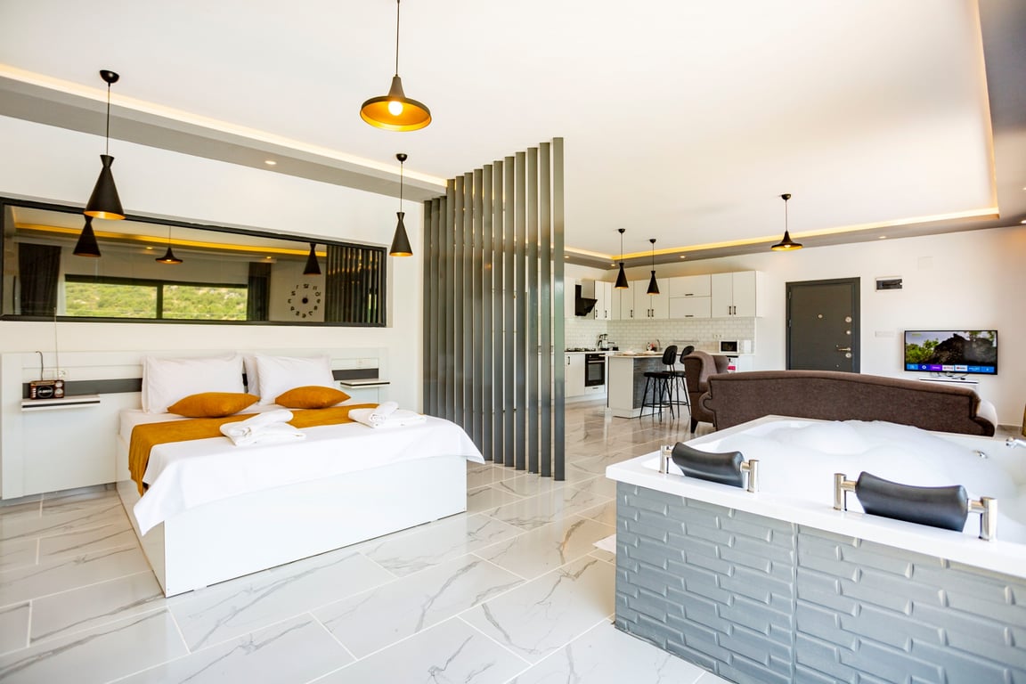 1-Çift kişilik yatak, banyo/WC ve jakuzi bulunmaktadır.