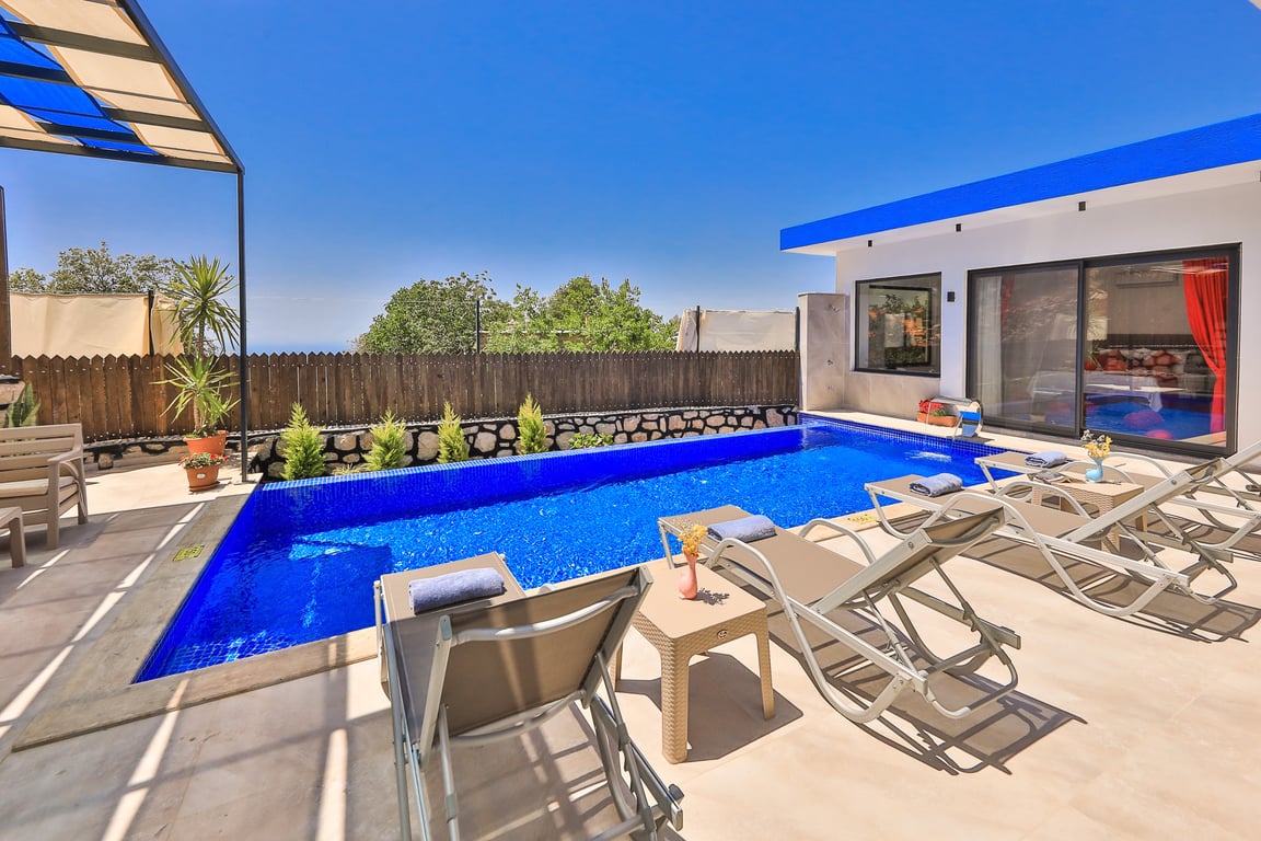 Villa Cancan, Kalkan İslamlar bölgesinde yer almakta olup, yeşillikler içinde doğa manzarasına hakim kiralık villalarımız arasında bulunmaktadır. Lüks ve modern bir şekilde dizayn edilen villamızda 2 adet yatak odası bulunmakta olup, 4 kişiye konaklama imkanı sunmaktadır. Yatak odalarından birinde, tüm yılın yorgunluğunu atabileceğiniz jakuzi yer almaktadır. Havuzu ve havuz terası korunaklı hale getirilen yazlık villamız, muhafazakar aileler tarafından gönül rahatlığıyla tercih edilebilir.