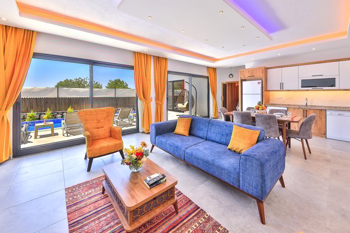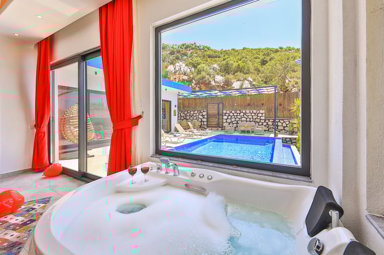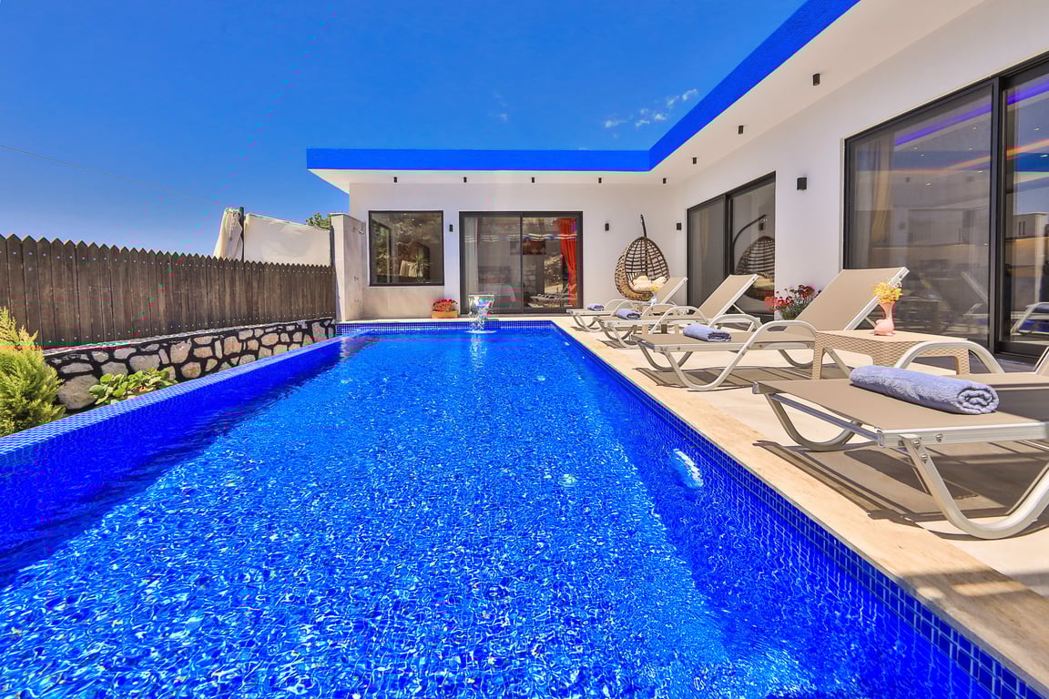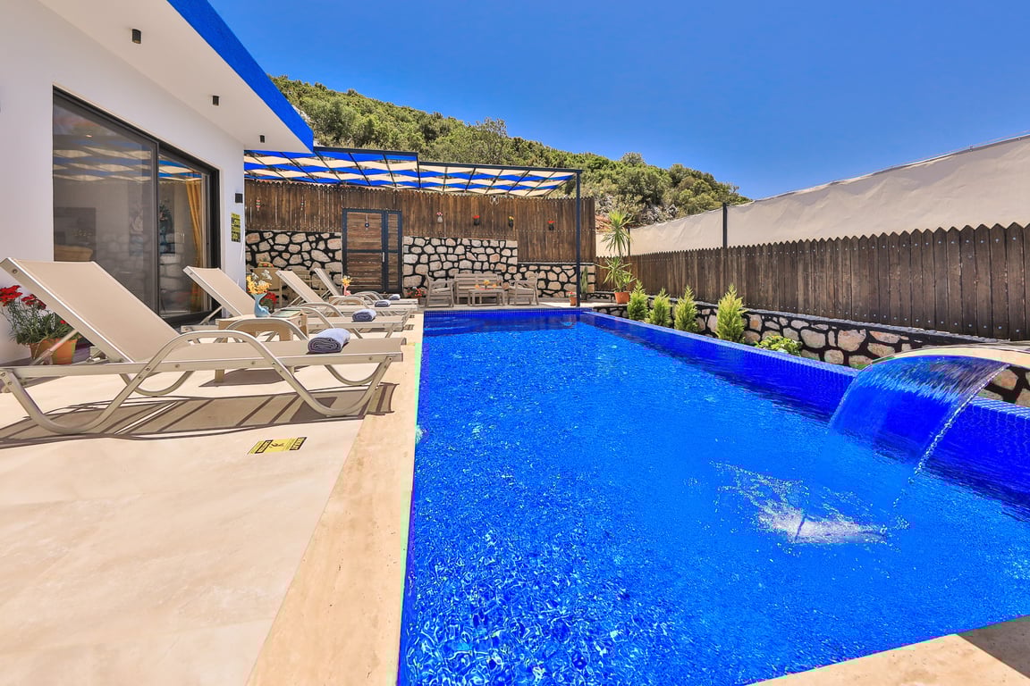 Villa Cancan, Kalkan İslamlar bölgesinde konumlanmakta olan yeşilliklerle kaplı doğa manzarasına hakim kiralık villalarımız arasında yer almaktadır. Lüks ve modern bir şekilde dizayn edilen villamızda 2 adet yatak odası bulunmakta olup, 4 kişiye konaklama imkanı sağlamaktadır. Yatak odalarından bir tanesinin içerisinde tüm yılın vermiş olduğu yorgunluğu giderebileceğiniz jakuzi yer almaktadır. Havuz ve havuz terası korunaklı hale getirilen yazlık villamızı muhafazakar aileler gönül rahatlığı ile tercih edebilirler. Hayallerinizin de ötesinde keyif dolu bir yazlık villada tatil için Villa Cancan’ı tercih edebilirsiniz.
