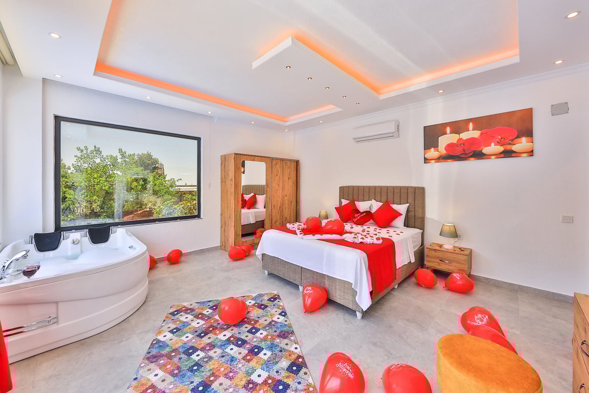 1-Çift kişilik yatak, banyo/WC, jakuzi ve bebek yatağı bulunmaktadır.