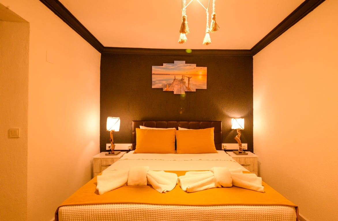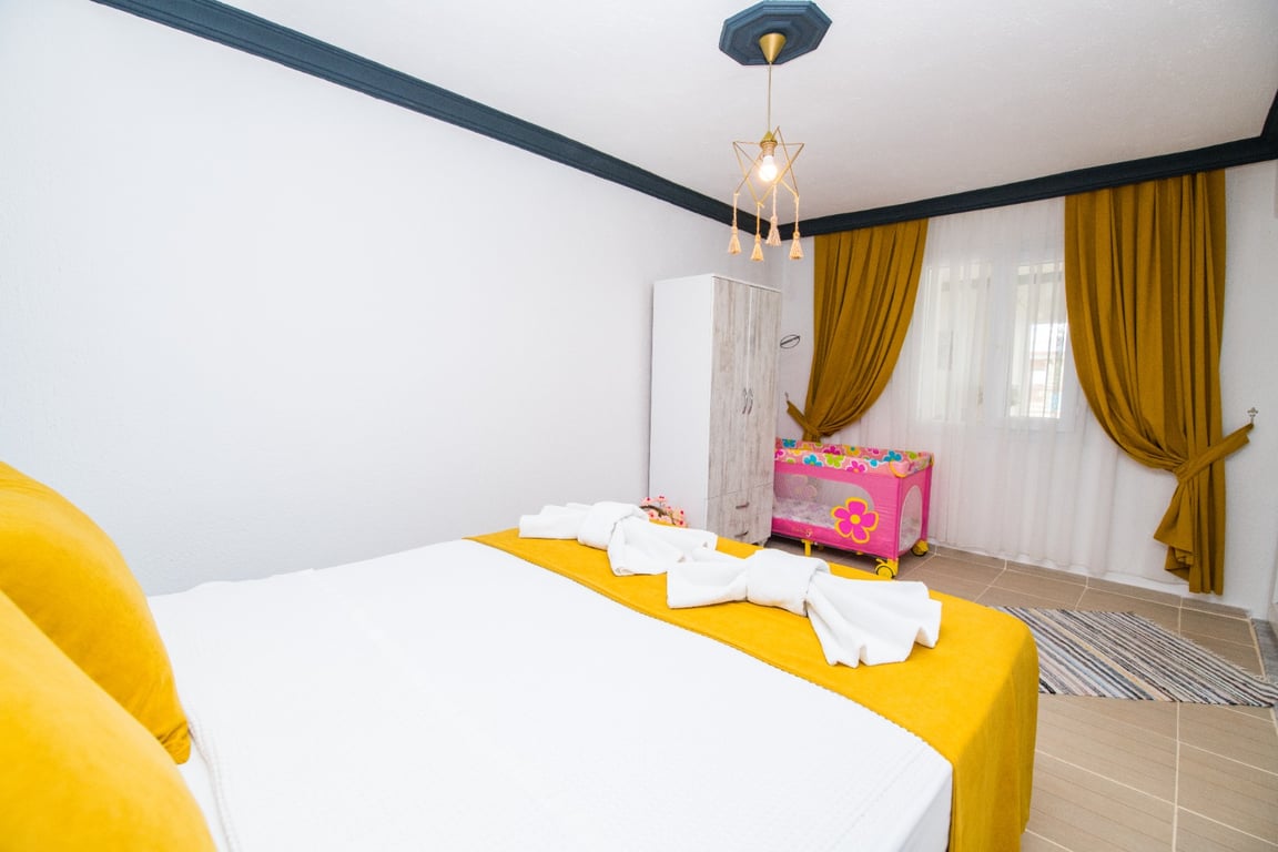 1-Çift kişilik yatak, banyo/WC ve bebek yatağı bulunmaktadır