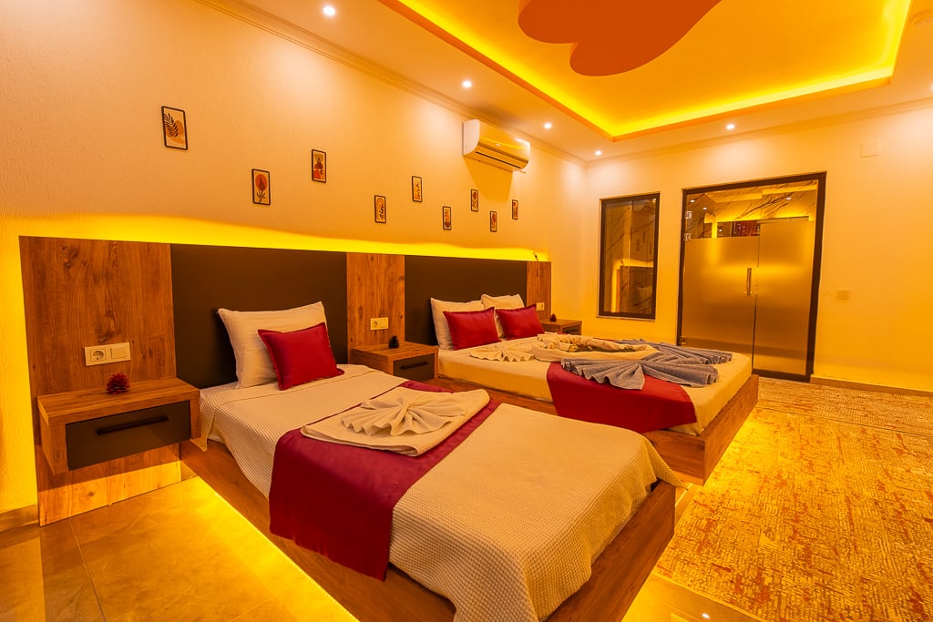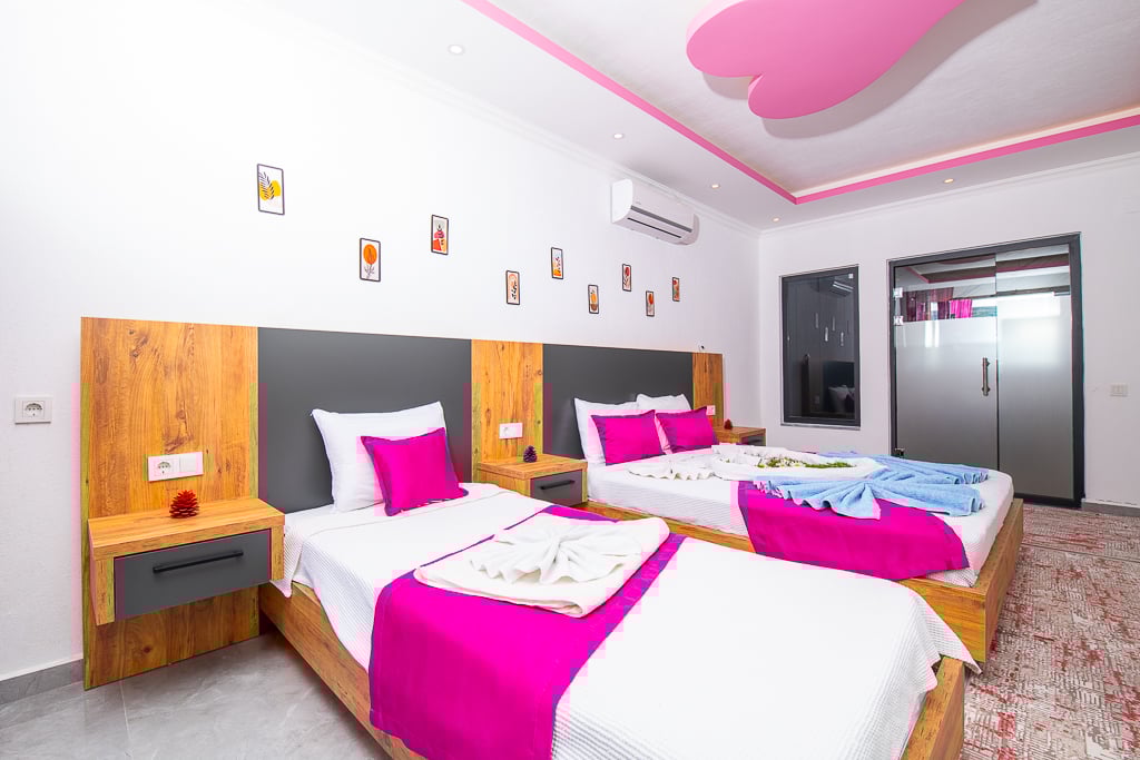 • Çift kişilik yatak ve bir tane tek kişilik yatak, banyo/wc bulunmaktadır.