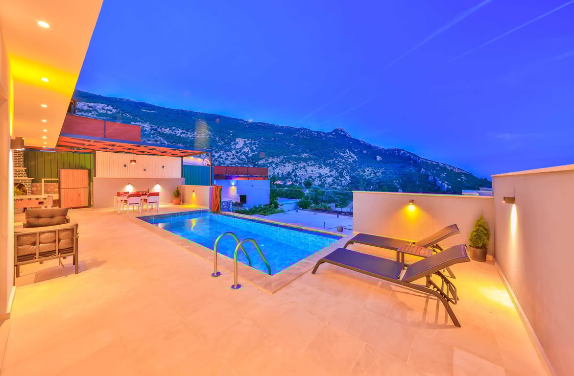 Havuzlu Kiralık Villa Doğa İle İç İçe Muhafazakar Kiralık Villa Kaş Kiralık Villa Antalya Kiralık Villa Jakuzili Balayı Kiralık Villa Muhafazakar Villa Balayı Villası Dağ Manzaralı Kalkan Kiralık Villa