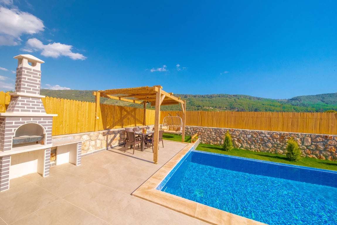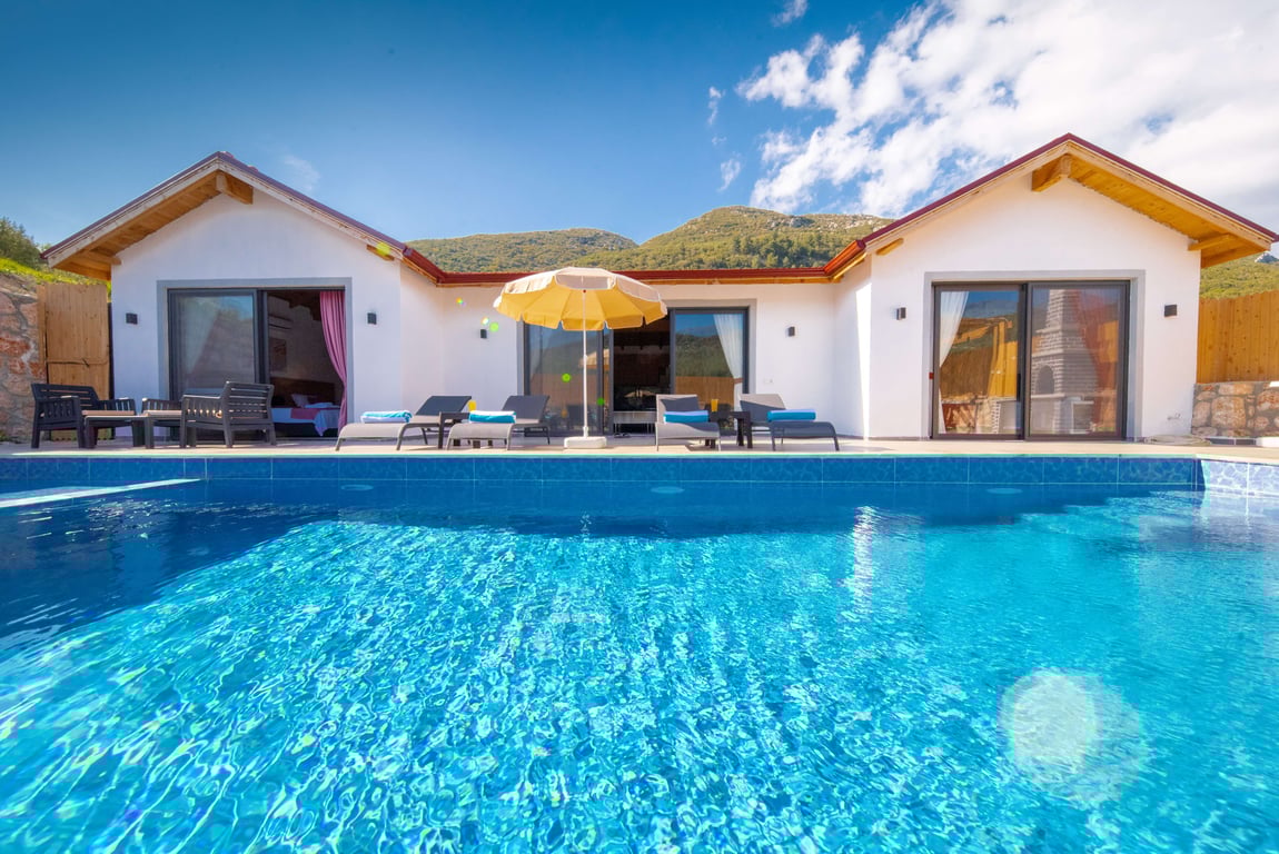 Villa Dessa, Kalkan Hacıoğlan bölgesinde konumlanmakta olan yeşilliklerle kaplı doğa manzarasına hakim kiralık villalarımız arasında yer almaktadır. Lüks ve modern bir şekilde dizayn edilen villamızda 2 adet yatak odası bulunmakta olup, 4 kişiye konaklama imkanı sağlamaktadır. Yatak odalarından bir tanesinin içerisinde tüm yılın vermiş olduğu yorgunluğu giderebileceğiniz jakuzi yer almaktadır. Havuz ve havuz terası korunaklı hale getirilen yazlık villamızı muhafazakar aileler gönül rahatlığı ile tercih edebilirler. Hayallerinizin de ötesinde keyif dolu bir yazlık villada tatil için Villa Dessa'yı tercih edebilirsiniz.