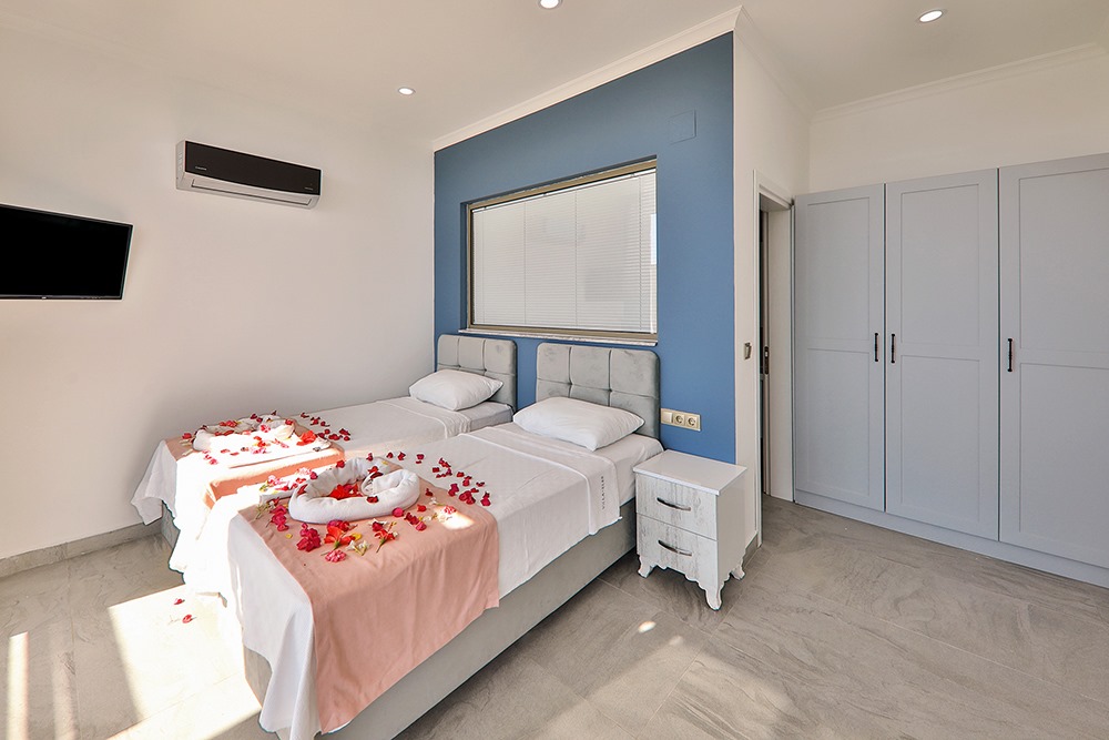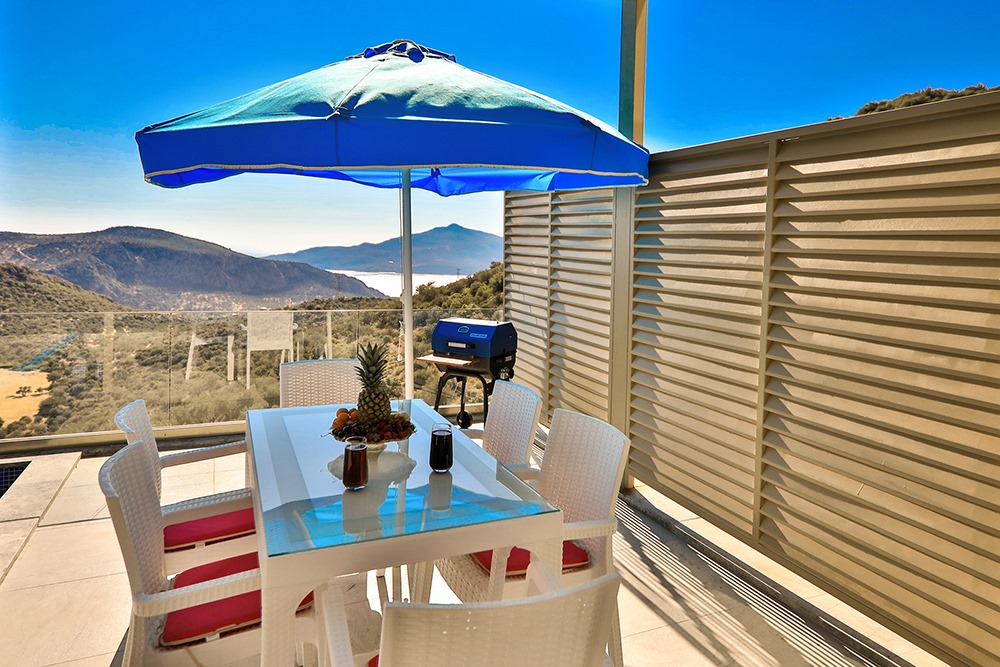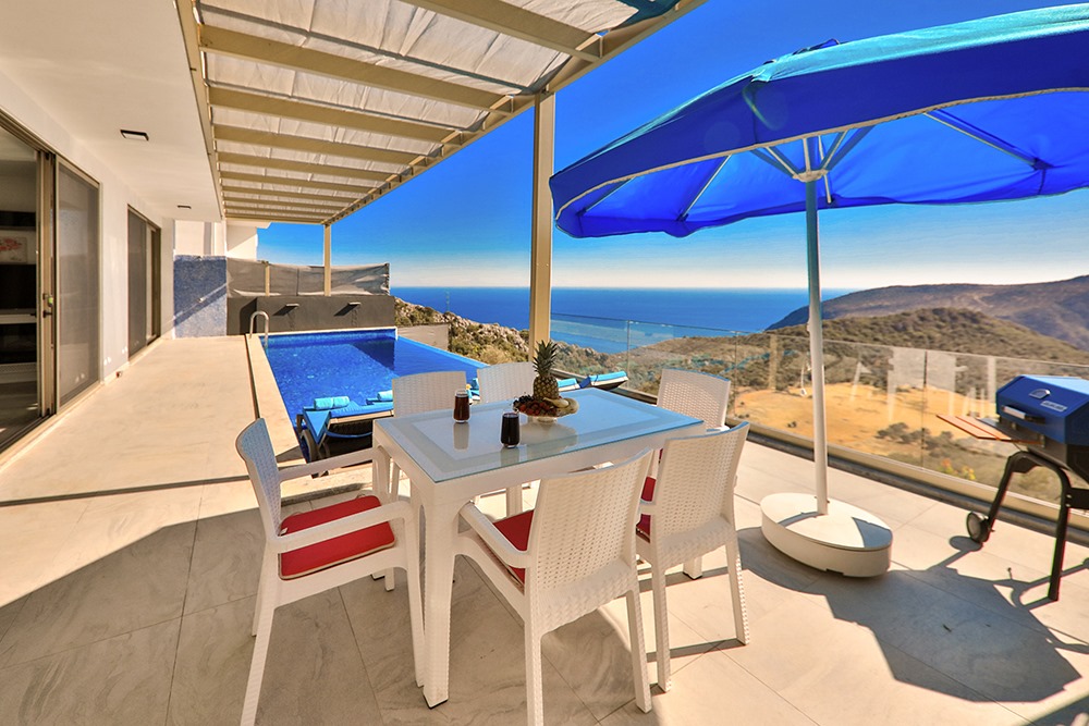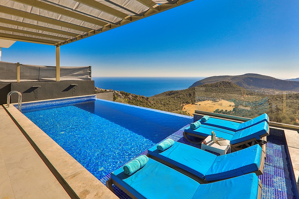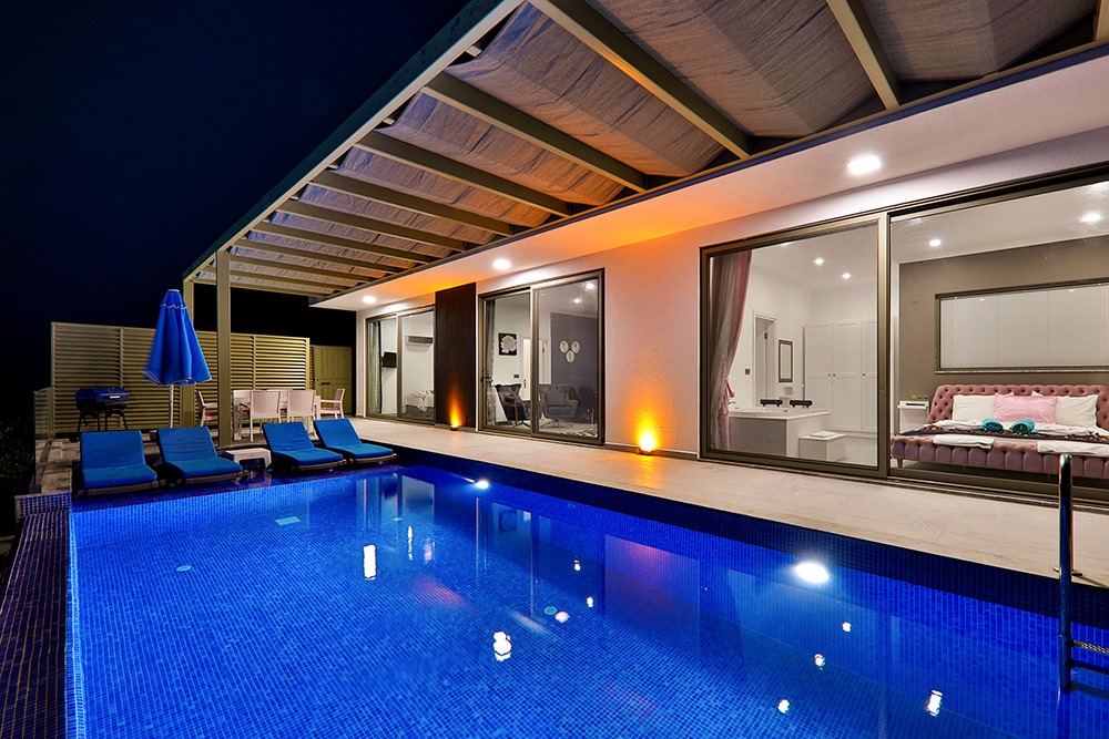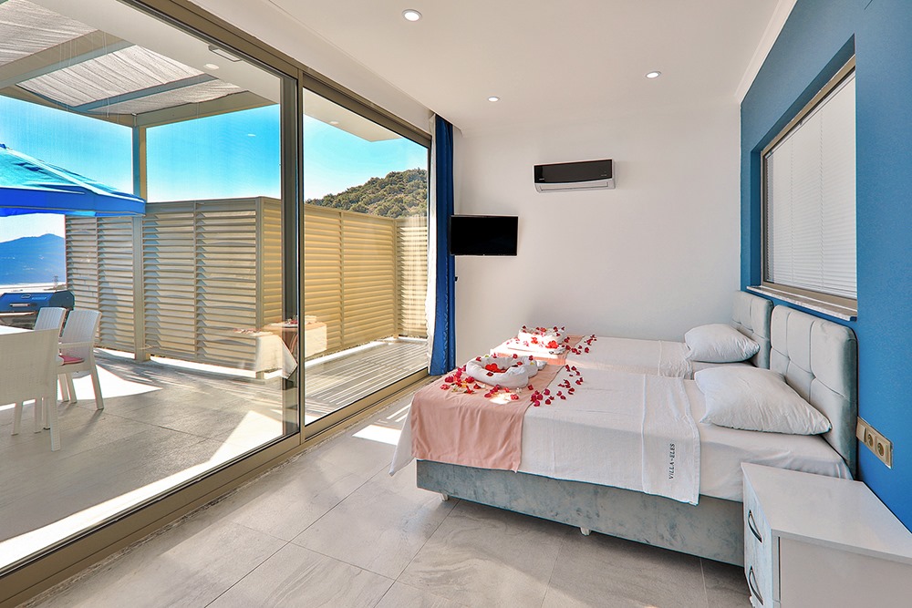 Villa Eles Duo, Kalkan Ordu bölgesinde konumlanmakta olup, yeşilliklerle kaplı doğa ve eşsiz deniz manzarasına hâkim kiralık villalarımız arasında yer almaktadır. Lüks ve modern bir şekilde dizayn edilen villamızda 2 adet yatak odası bulunmakta olup, 4 kişilik konaklama kapasitesine sahiptir. Yatak odalarından birinde yıl boyunca biriken yorgunluğunuzu atabileceğiniz jakuzi yer almaktadır. Havuz ve havuz terası korunaklı olan villamız, mahremiyet arayan muhafazakâr aileler için ideal bir tercihtir. Doğa ve huzur içinde, sevdiklerinizle unutulmaz bir tatil deneyimi için Villa Eles Duo’yu gönül rahatlığıyla tercih edebilirsiniz.
