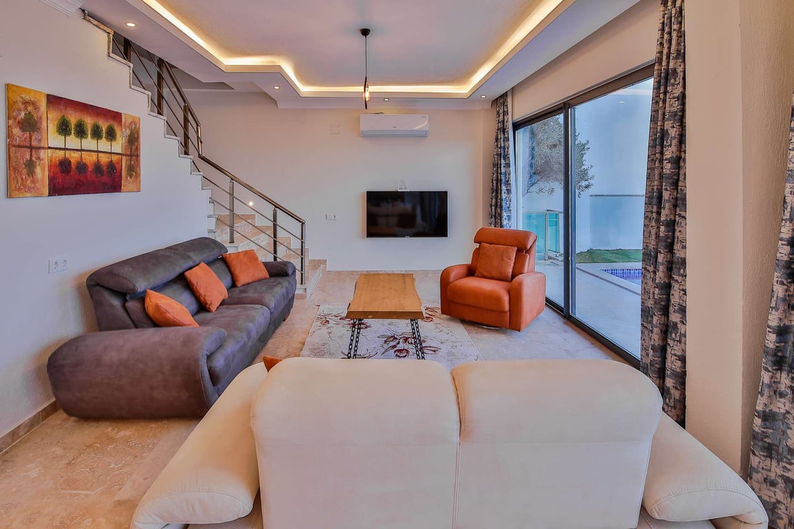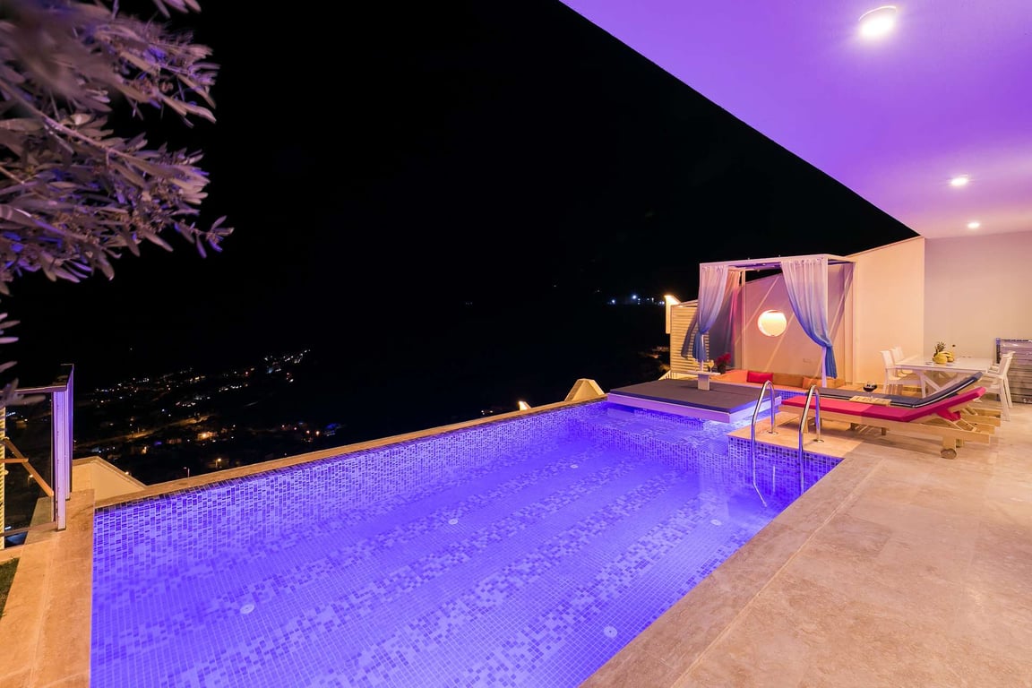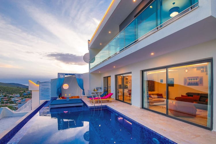 Villa Etiler, Kalkan Akbel bölgesinde konumlanmakta olan muhteşem deniz ve yeşilliklerle kaplı doğa manzarasına hakim kiralık villalarımız arasında yer almaktadır. Lüks ve modern bir şekilde dizayn edilen villamızda 2 adet yatak odası bulunmakta olup, 4 kişiye konaklama imkanı sağlamaktadır. Yatak odalarından bir tanesinin içerisinde tüm yılın vermiş olduğu yorgunluğu giderebileceğiniz jakuzi yer almaktadır. Havuz ve havuz terası korunaklı hale getirilen yazlık villamızı muhafazakar aileler gönül rahatlığı ile tercih edebilirler. Hayallerinizin de ötesinde keyif dolu bir yazlık villada tatil için Villa Etiler'i tercih edebilirsiniz.