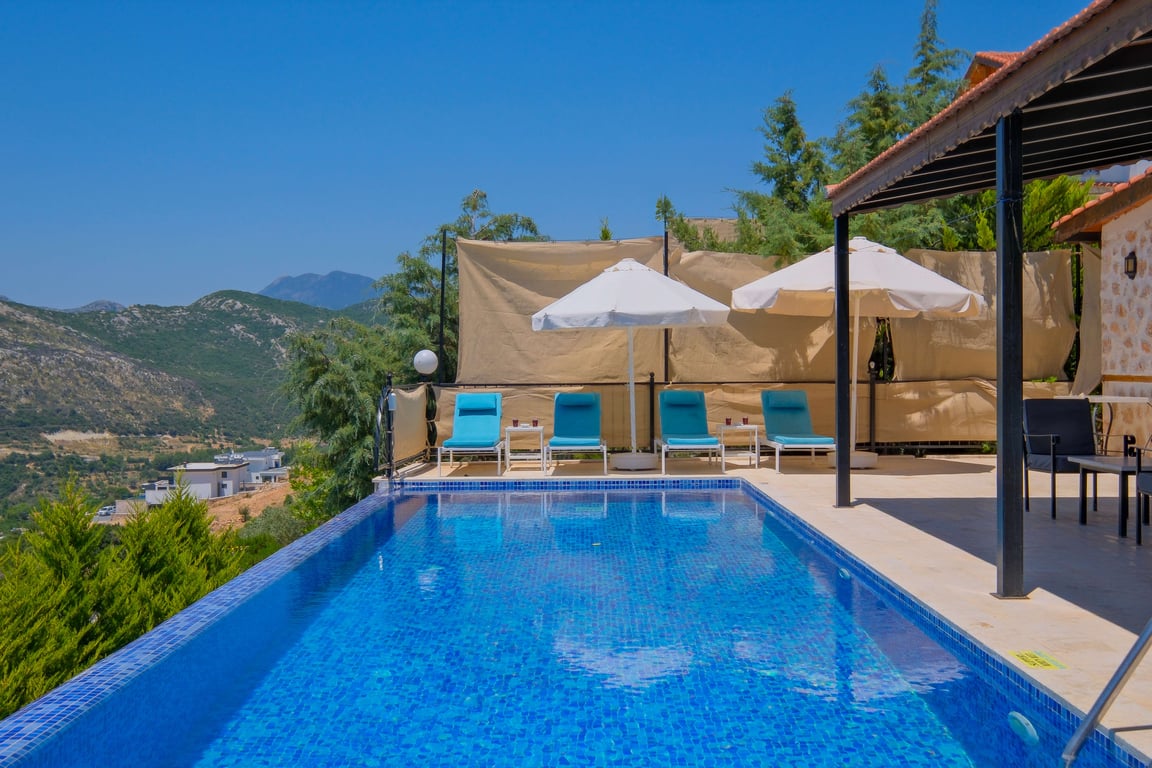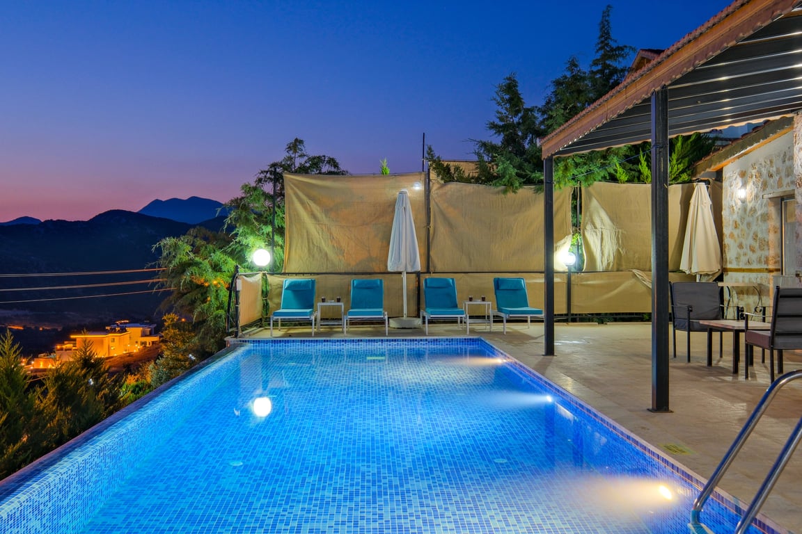 Villa Evmay, Kalkan Sarıbelen bölgesinde, doğa manzaralı ve yeşillikler içinde konumlanmaktadır. Lüks ve modern şekilde tasarlanan villamızda 3 adet yatak odası bulunmakta olup toplamda 6 kişilik konaklama kapasitesi sunmaktadır. Yatak odalarından birinde, yılın yorgunluğunu atabileceğiniz jakuzi yer almaktadır. Havuz ve havuz terası korunaklıdır, bu nedenle muhafazakâr aileler için uygundur. Konforlu ve huzurlu bir tatil için Villa Evmay ideal bir seçenektir.