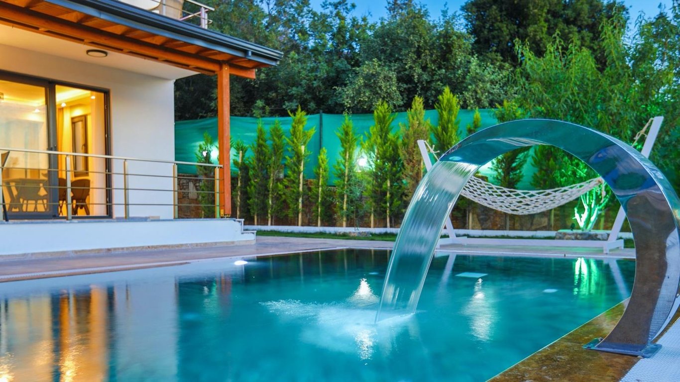 Villa Favori One, Fethiye Ovacık bölgesinde konumlanmakta olan yeşilliklerle kaplı doğa manzarasına hakim kiralık villalarımız arasında yer almaktadır. Lüks ve modern bir şekilde dizayn edilen villamızda 2 adet yatak odası bulunmakta olup, 4 kişiye konaklama imkanı sağlamaktadır. Yatak odalarından bir tanesinin içerisinde tüm yılın vermiş olduğu yorgunluğu giderebileceğiniz jakuzi yer almaktadır. Havuz ve havuz terası korunaklı hale getirilen yazlık villamızı muhafazakar aileler gönül rahatlığı ile tercih edebilirler. Hayallerinizin de ötesinde keyif dolu bir yazlık villada tatil için Villa Favori One’ı tercih edebilirsiniz.
