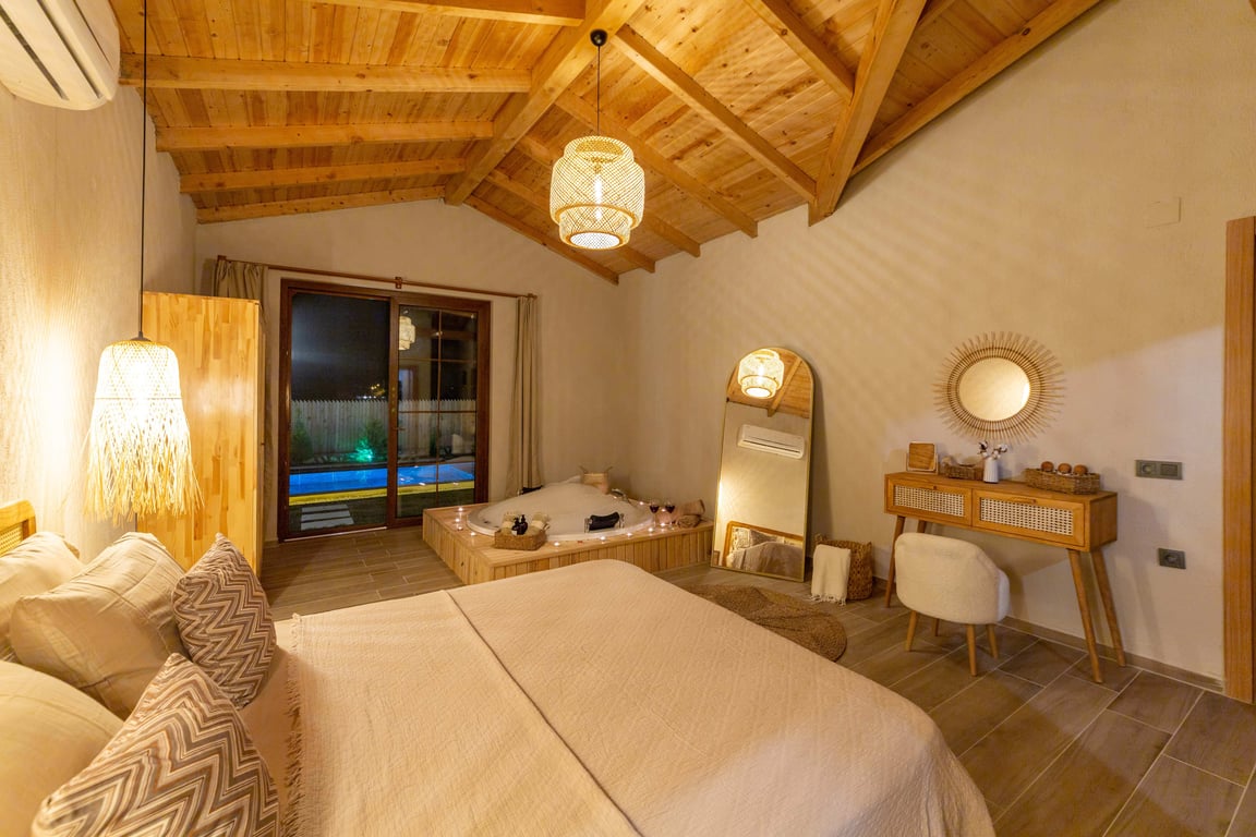 1-Çift kişilik yatak, banyo/WC ve jakuzi bulunmaktadır.