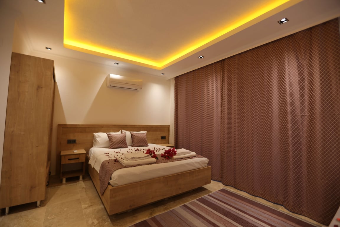 Çift kişilik yatak, banyo/wc, jakuzi bulunmaktadır.