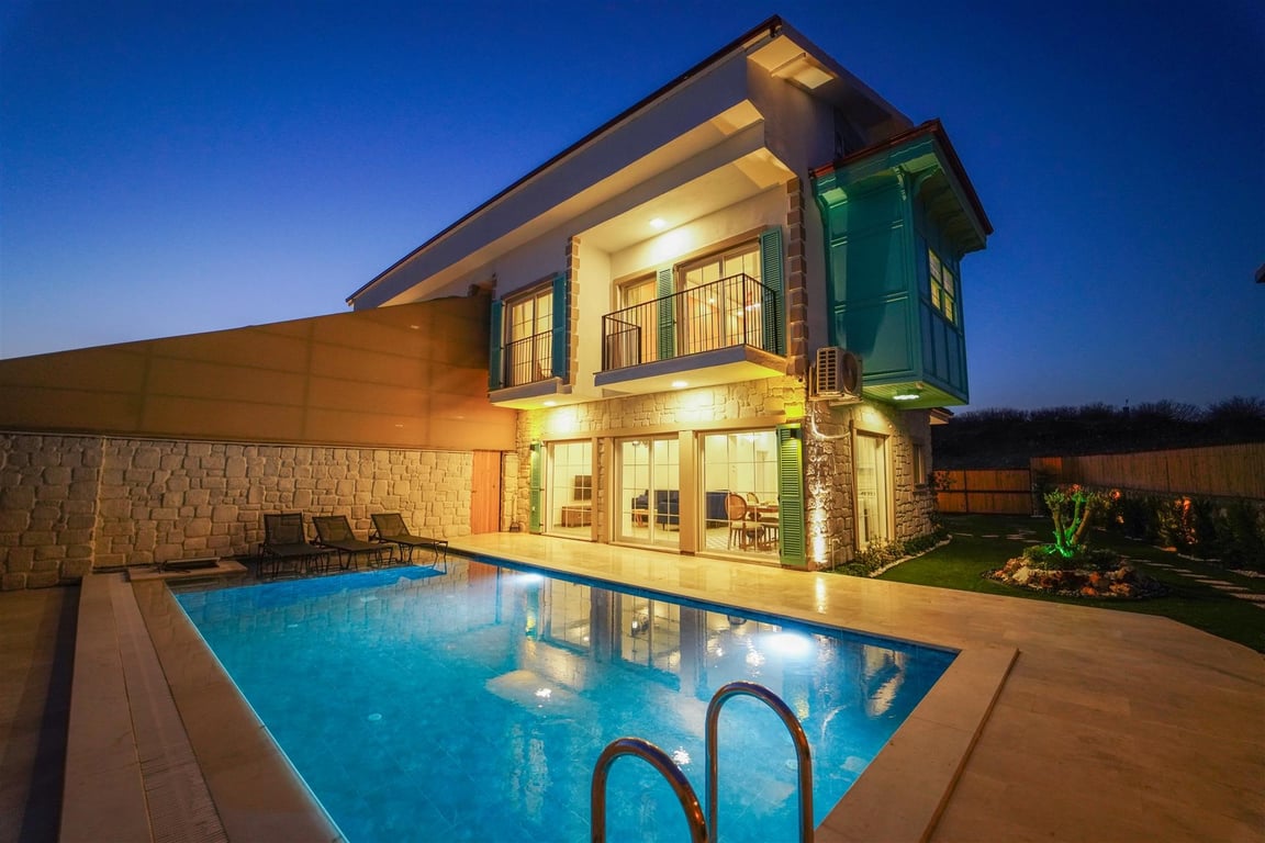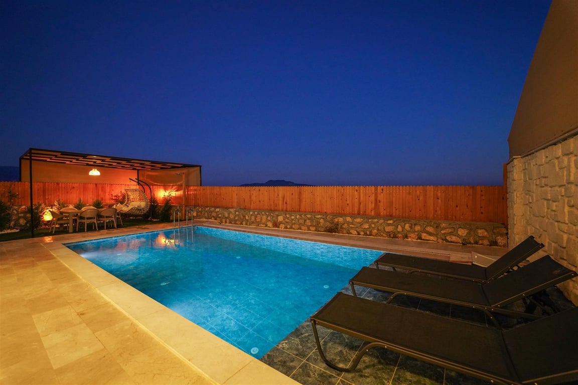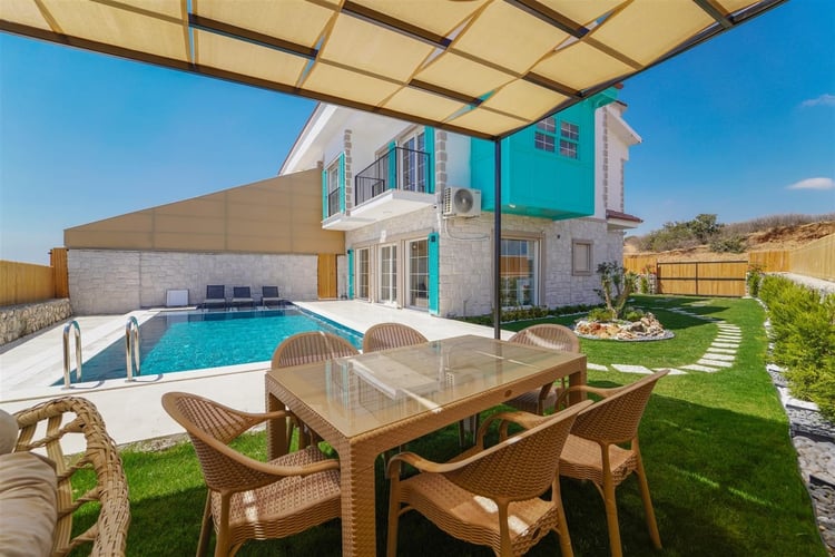 Villa Kayra Konak 2 Blue, Seydikemer Kumluova bölgesinde konumlanmakta olup, panoramik deniz ve yeşilliklerle kaplı doğa manzarasına hâkim kiralık villalarımız arasında yer almaktadır. Lüks ve modern bir şekilde dizayn edilen villamızda 3 adet yatak odası bulunmakta olup, 6 kişiye konaklama imkânı sağlamaktadır. Yatak odalarından birinde, tüm yılın vermiş olduğu yorgunluğu giderebileceğiniz jakuzi yer almaktadır. Havuz ve havuz terası korunaklı hale getirilen yazlık villamız, muhafazakâr aileler tarafından gönül rahatlığıyla tercih edilebilir. Hayallerinizin de ötesinde keyif dolu bir tatil için Villa Kayra Konak 2 Blue’yu tercih edebilirsiniz.