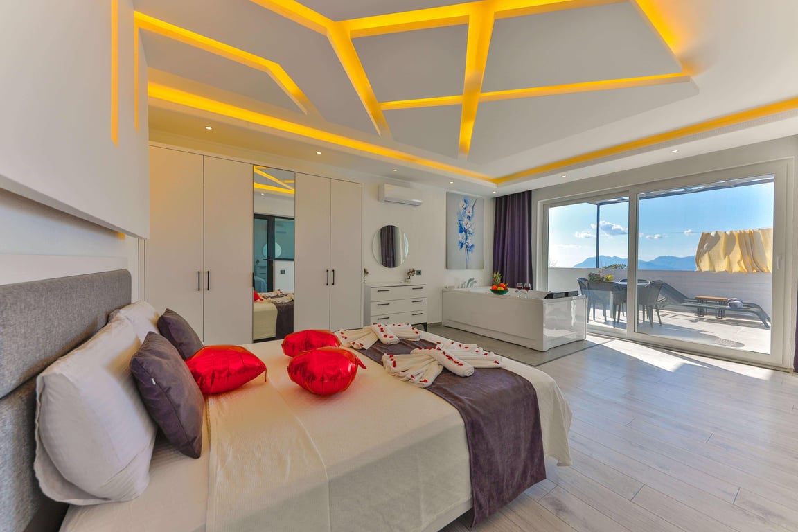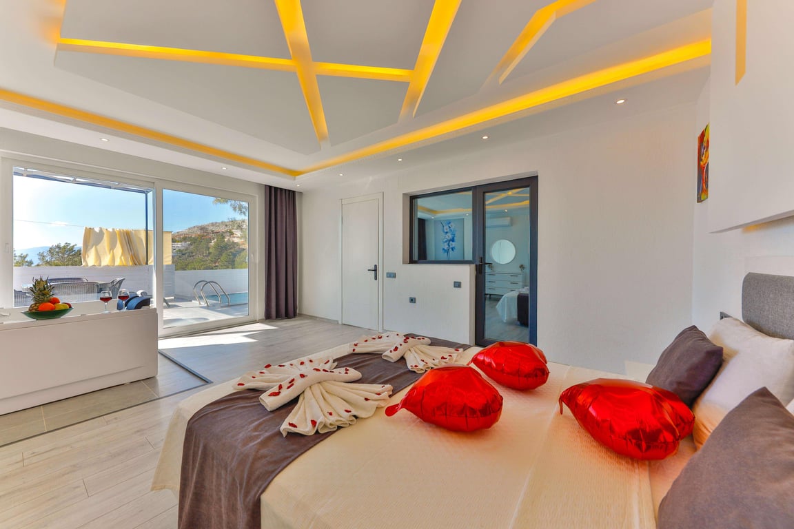 Villa Lisa, Kalkan İslamlar bölgesinde konumlanmakta olan, yeşilliklerle kaplı doğa manzarasına hâkim kiralık villalarımız arasında yer almaktadır. Lüks ve modern bir şekilde dizayn edilen villamızda 1 adet yatak odası bulunmakta olup, 2 kişiye konaklama imkânı sağlamaktadır. Yatak odasının içerisinde, tüm yılın vermiş olduğu yorgunluğu giderebileceğiniz jakuzi yer almaktadır. Havuz ve havuz terası korunaklı hale getirilen yazlık villamızı muhafazakâr aileler gönül rahatlığı ile tercih edebilirler. Hayallerinizin de ötesinde keyif dolu bir yazlık villada tatil için Villa Lisa’yı tercih edebilirsiniz.