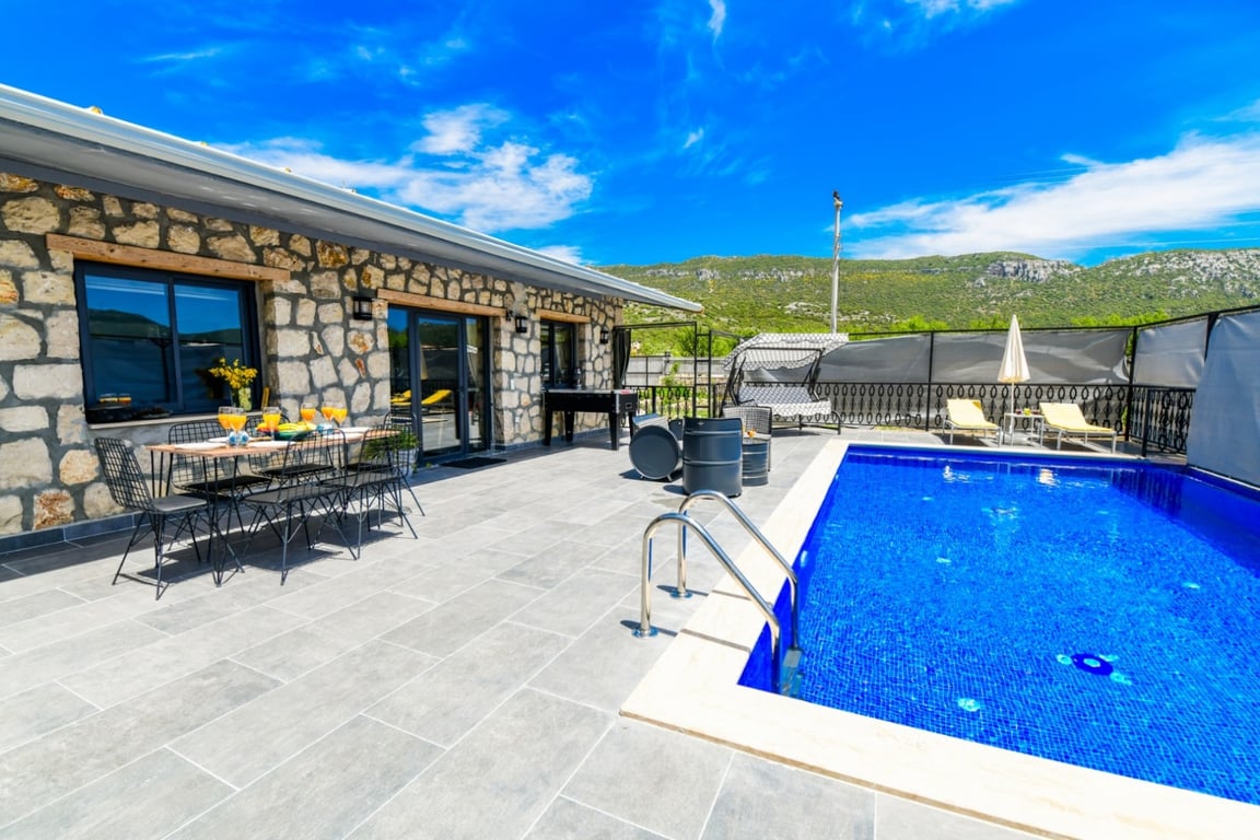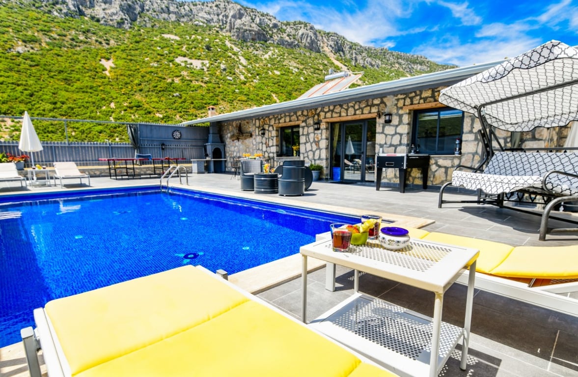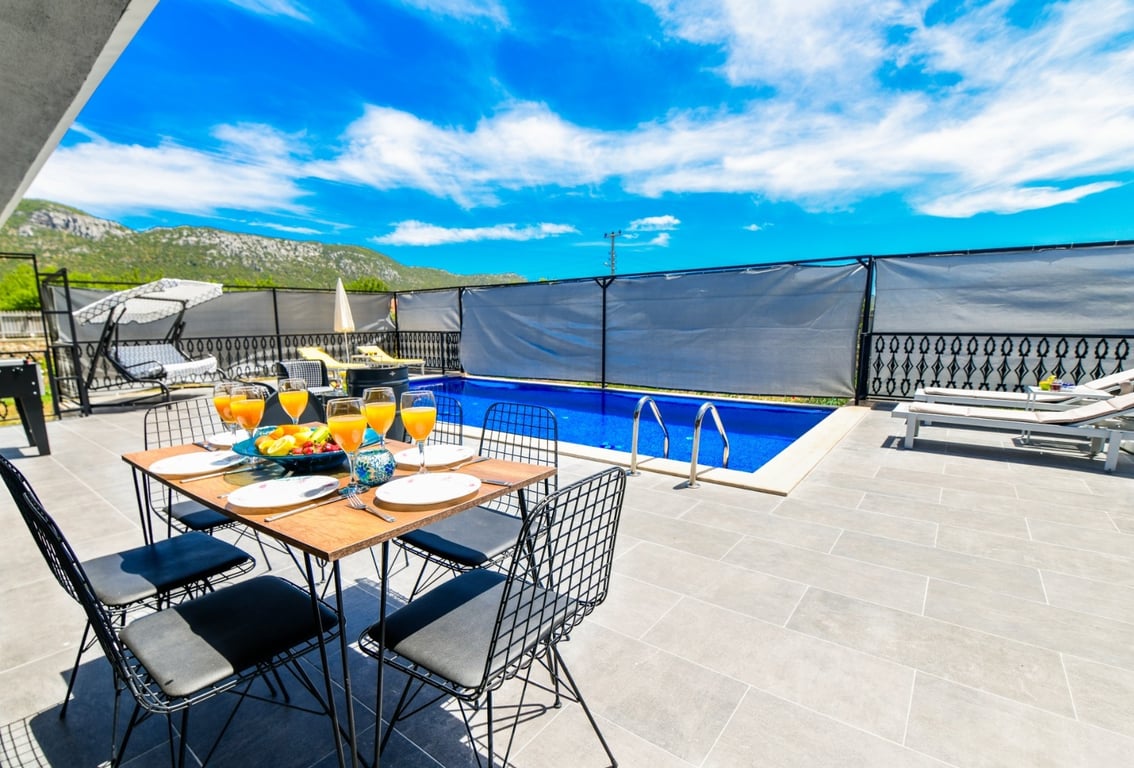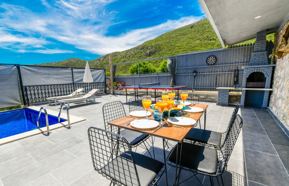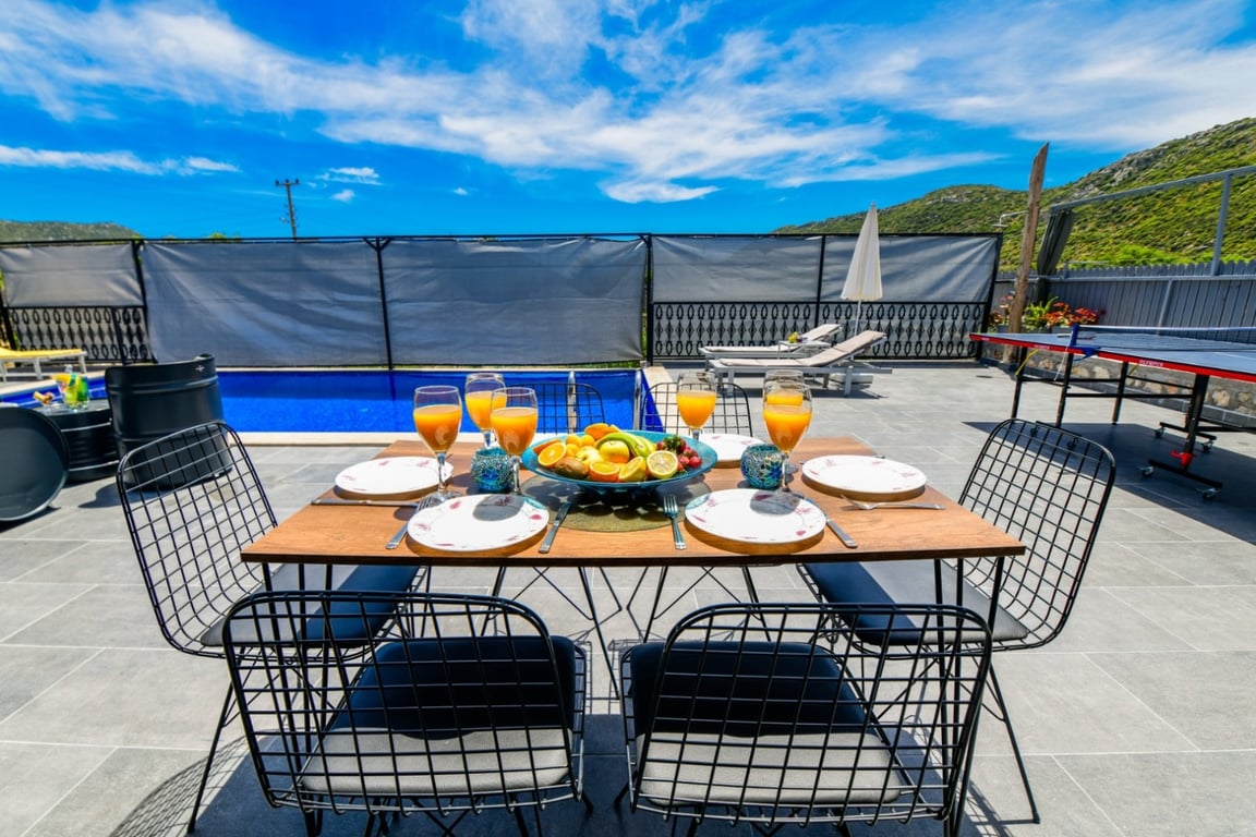 Villa Mavi Boncuk, Kalkan Bezirgan bölgesinde konumlanmakta olan yeşilliklerle kaplı doğa manzarasına hakim kiralık villalarımız arasında yer almaktadır. Lüks ve modern bir şekilde dizayn edilen villamızda 2 adet yatak odası bulunmakta olup, 4 kişiye konaklama imkanı sağlamaktadır. Yatak odalarından bir tanesinin içerisinde tüm yılın vermiş olduğu yorgunluğu giderebileceğiniz jakuzi yer almaktadır. Havuz ve havuz terası korunaklı hale getirilen yazlık villamızı muhafazakar aileler gönül rahatlığı ile tercih edebilirler. Hayallerinizin de ötesinde keyif dolu bir yazlık villada tatil için Villa Mavi Boncuk'u tercih edebilirsiniz.