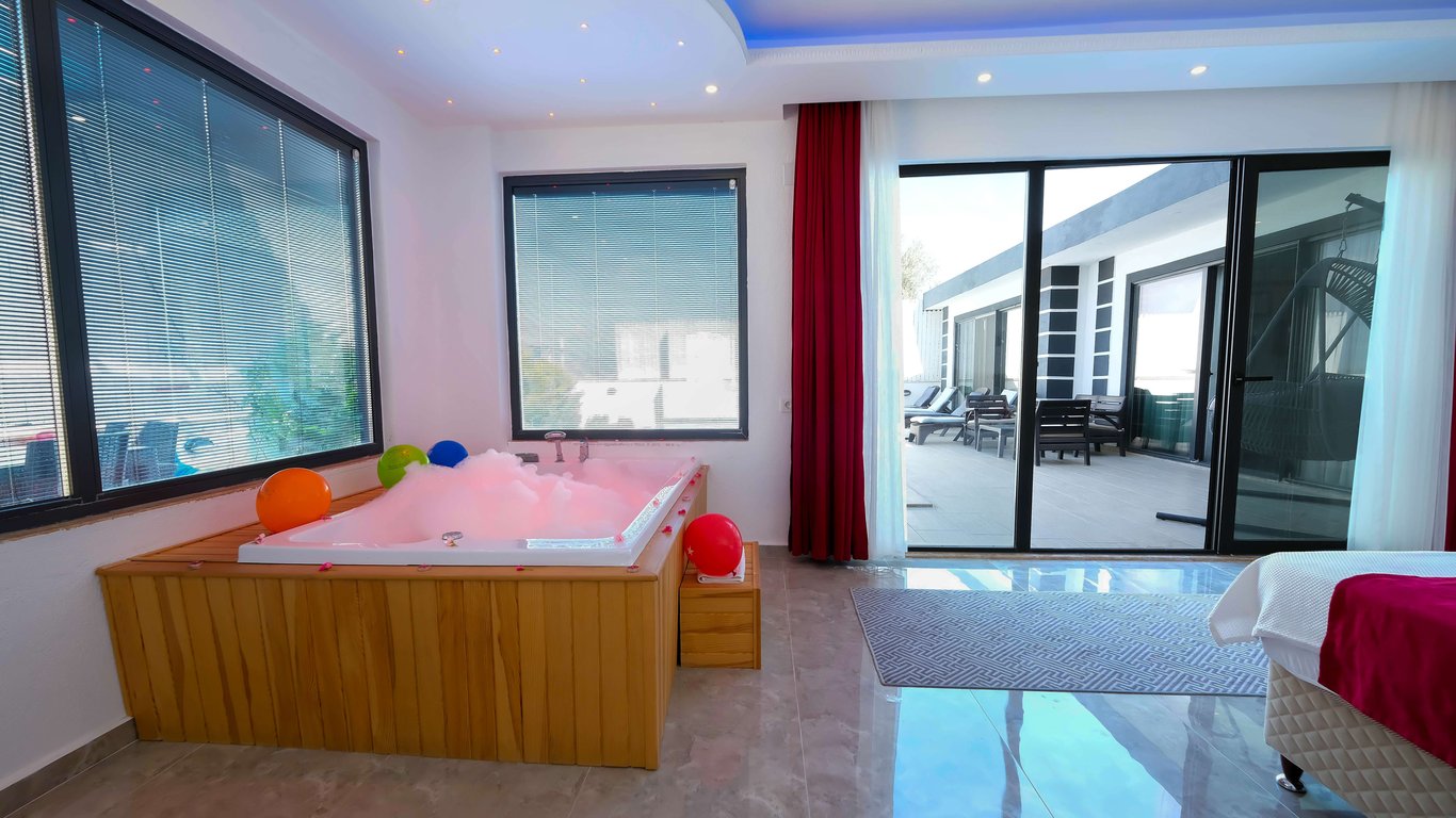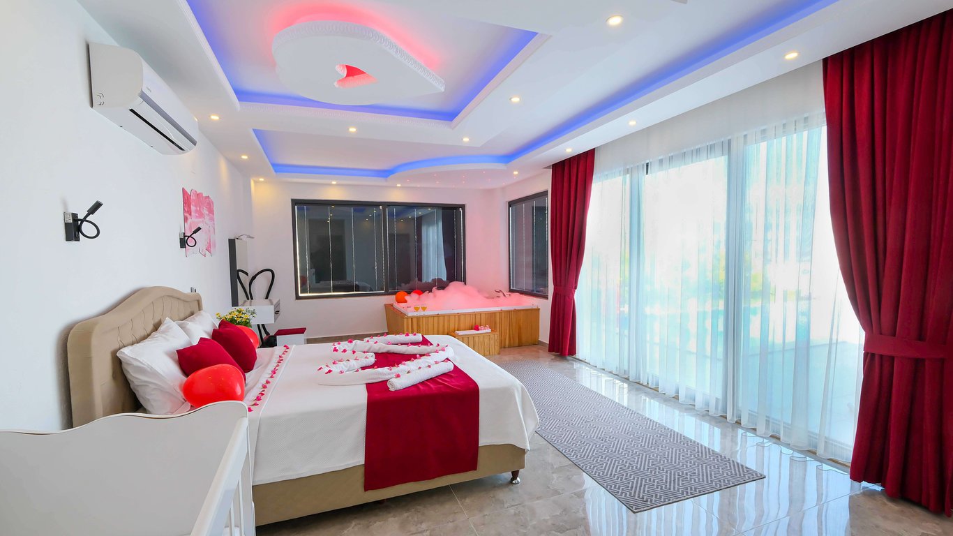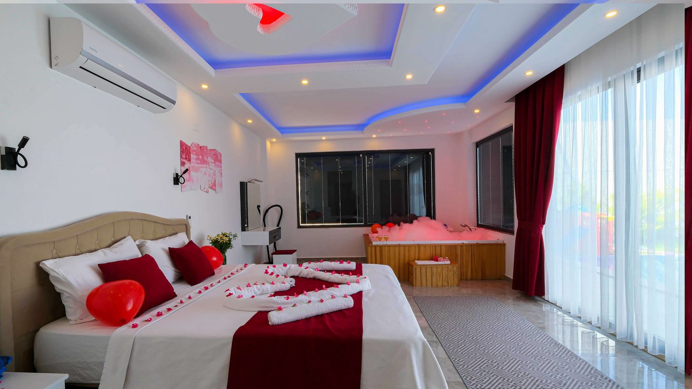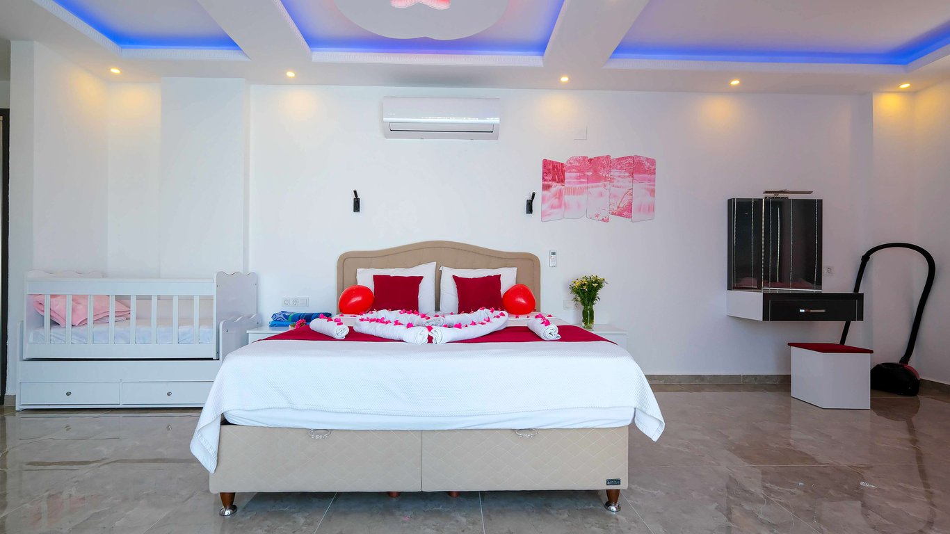 1-Çift kişilik yatak, banyo/wc, jakuzi ve bebek yatağı bulunmaktadır.