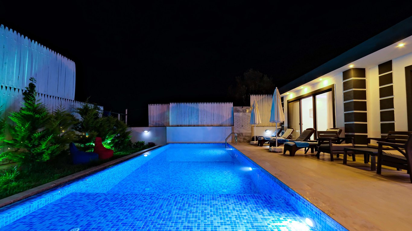 Villa Memo, Kalkan Yeşilköy bölgesinde, yeşilliklerle kaplı doğa manzarasına hakim kiralık villalarımız arasında yer almaktadır. Lüks ve modern bir şekilde dizayn edilen villamızda 2 adet yatak odası bulunmakta olup, 4 kişiye konaklama imkanı sağlamaktadır. Yatak odalarından bir tanesinin içerisinde jakuzi yer almaktadır, bu sayede tüm yılın yorgunluğunu atabilirsiniz. Havuz ve havuz terası korunaklı hale getirilen yazlık villamızı muhafazakar aileler gönül rahatlığı ile tercih edebilirler. Hayallerinizin de ötesinde keyif dolu bir yazlık villada tatil için Villa Memo'yu tercih edebilirsiniz.
