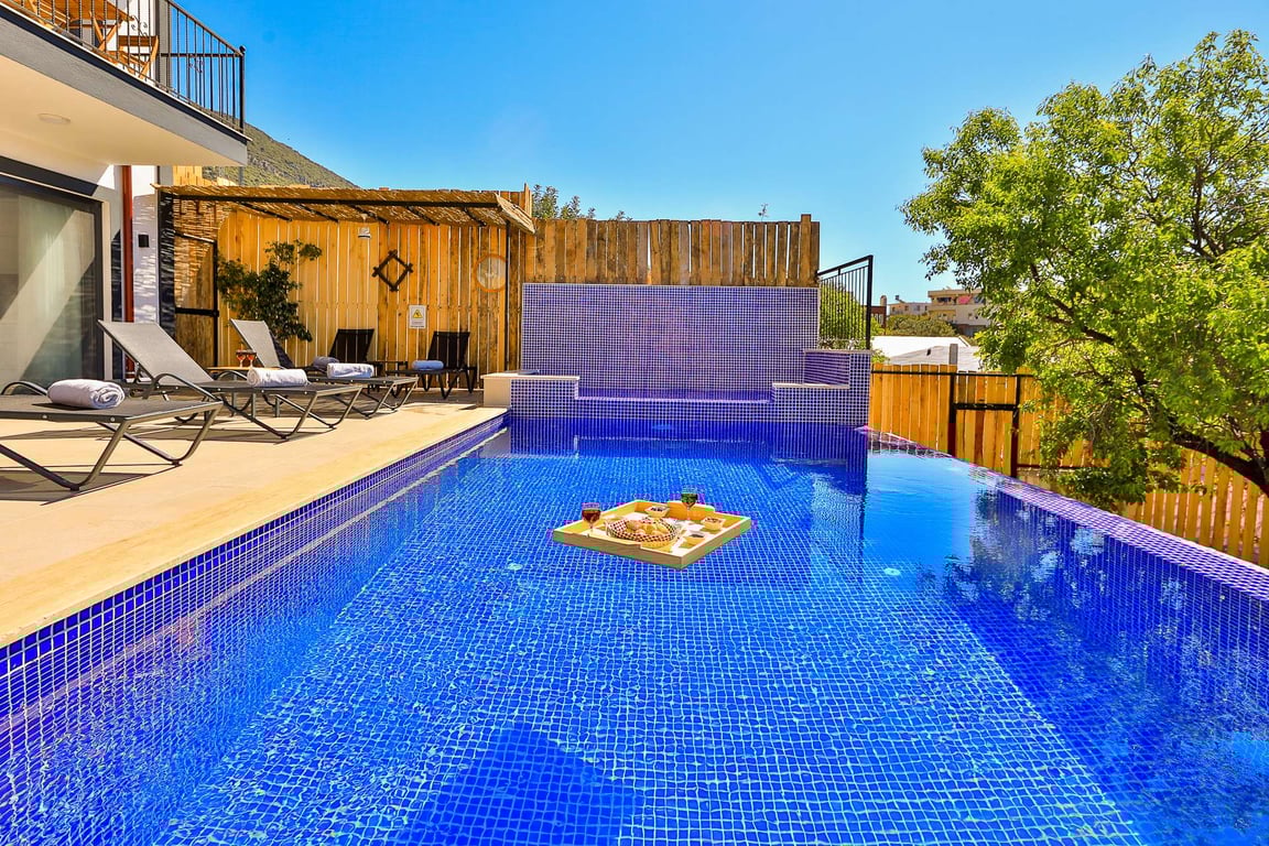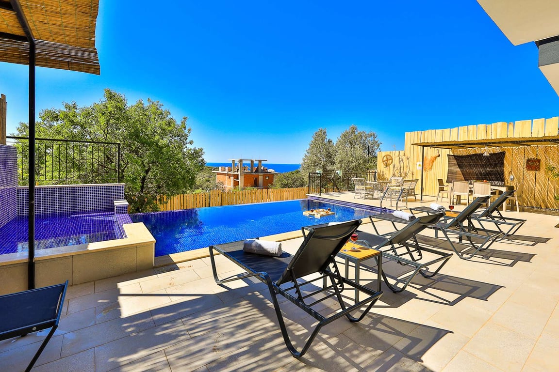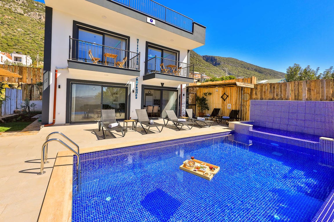 Villa Moren 2, Kaş Gökseki bölgesinde, muhteşem deniz ve yeşilliklerle kaplı doğa manzarasına hakim kiralık villalarımız arasında yer almaktadır. Lüks ve modern bir şekilde dizayn edilen villamızda 3 adet yatak odası bulunmakta olup, 6 kişiye konaklama imkanı sağlamaktadır. Yatak odalarından bir tanesinin içerisinde tüm yılın vermiş olduğu yorgunluğu giderebileceğiniz jakuzi yer almaktadır. Çocukların rahatça eğlenebileceği çocuk havuzu bulunmaktadır. Havuz ve havuz terası korunaklı hale getirilen yazlık villamızı muhafazakar aileler gönül rahatlığı ile tercih edebilirler. Hayallerinizin de ötesinde keyif dolu bir yazlık villada tatil için Villa Moren 2’yi tercih edebilirsiniz.