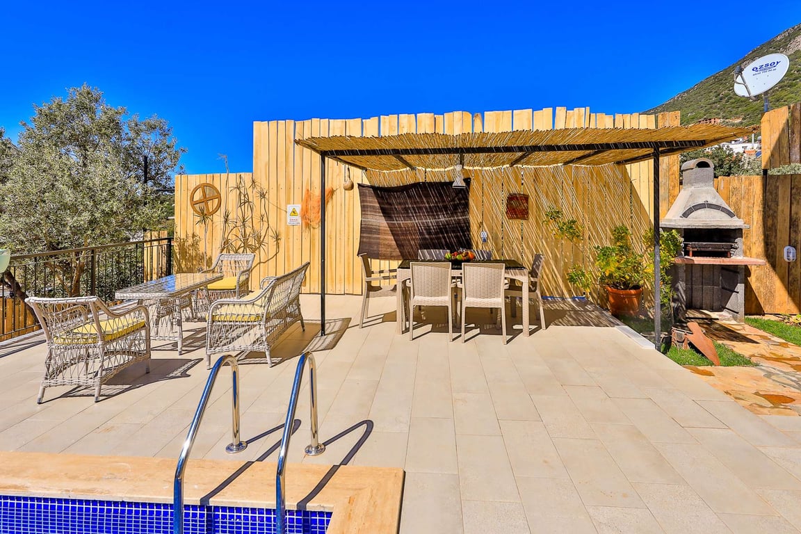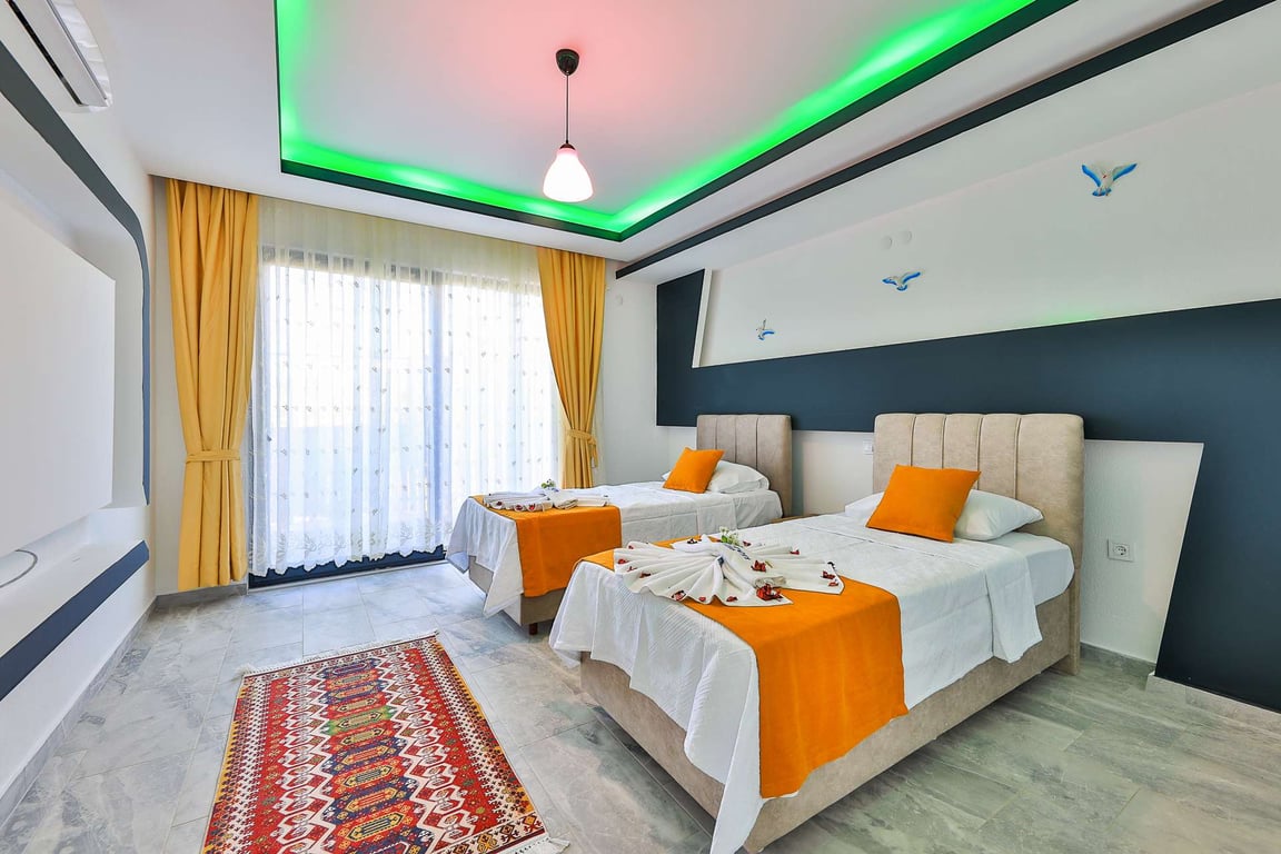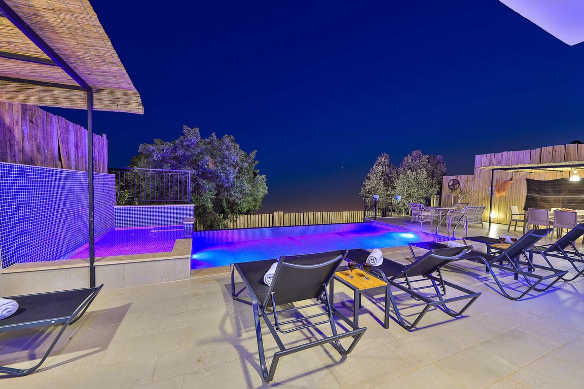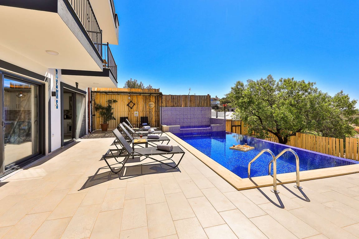 Villa Moren 2, Kaş Gökseki bölgesinde, muhteşem deniz ve yeşilliklerle kaplı doğa manzarasına hakim kiralık villalarımız arasında yer almaktadır. Lüks ve modern bir şekilde dizayn edilen villamızda 3 adet yatak odası bulunmakta olup, 6 kişiye konaklama imkanı sağlamaktadır. Yatak odalarından bir tanesinin içerisinde tüm yılın vermiş olduğu yorgunluğu giderebileceğiniz jakuzi yer almaktadır. Çocukların rahatça eğlenebileceği çocuk havuzu bulunmaktadır. Havuz ve havuz terası korunaklı hale getirilen yazlık villamızı muhafazakar aileler gönül rahatlığı ile tercih edebilirler. Hayallerinizin de ötesinde keyif dolu bir yazlık villada tatil için Villa Moren 2’yi tercih edebilirsiniz.
