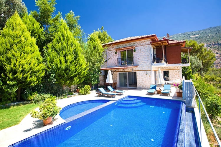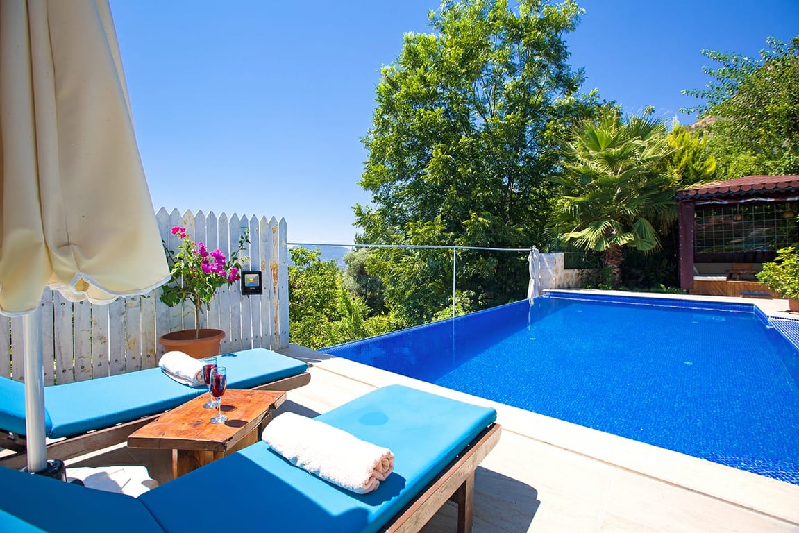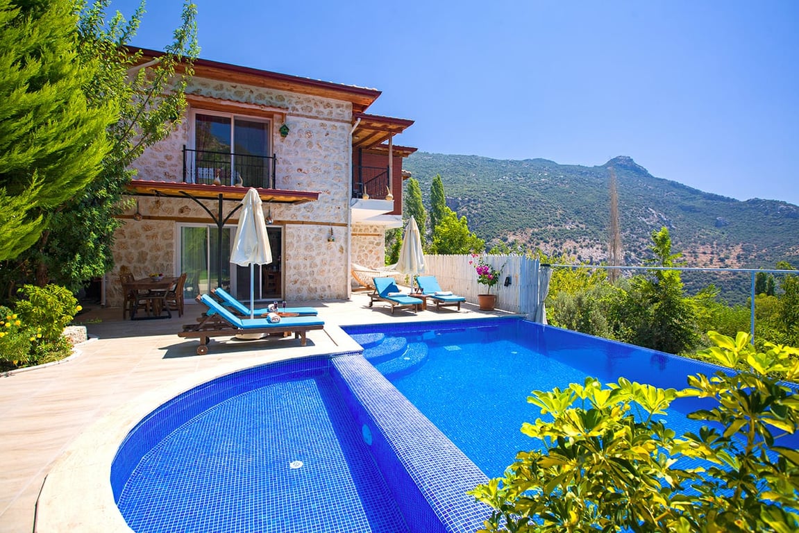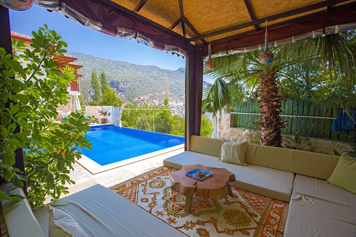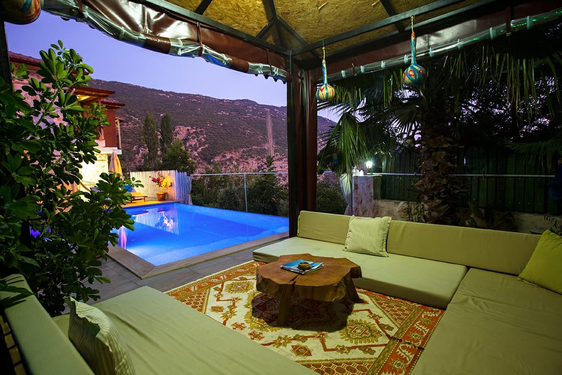 Villa Muar, Kalkan İslamlar bölgesinde konumlanmakta olan, yeşilliklerle kaplı doğa manzarasına hâkim kiralık villalarımız arasında yer almaktadır. Konforlu ve modern bir şekilde dizayn edilen villamızda 2 adet yatak odası bulunmakta olup, 4 kişiye konaklama imkânı sağlamaktadır. Yatak odalarından bir tanesinin içerisinde, tüm yılın vermiş olduğu yorgunluğu giderebileceğiniz jakuzi yer almaktadır. Havuz ve havuz terası korunaklı hale getirilen yazlık villamızı muhafazakâr aileler gönül rahatlığıyla tercih edebilirler. Hayallerinizin de ötesinde keyif dolu bir yazlık villada tatil için Villa Muar'ı tercih edebilirsiniz.