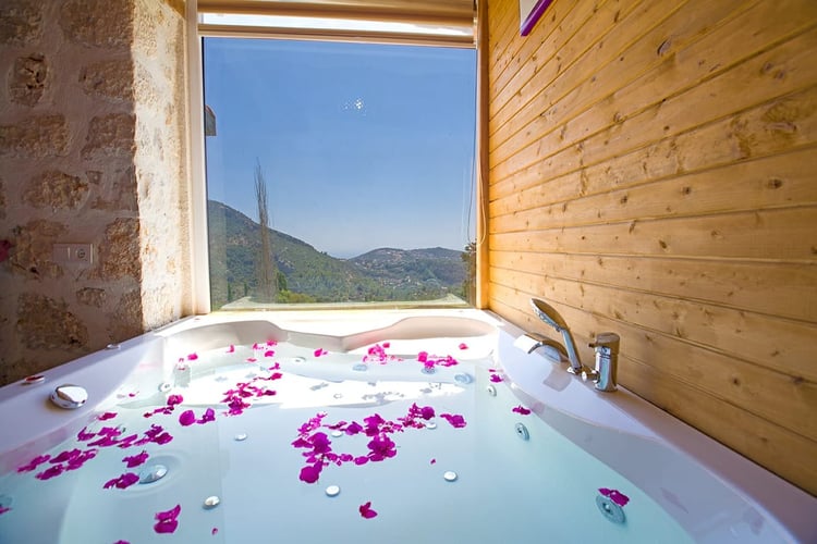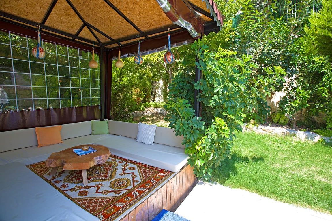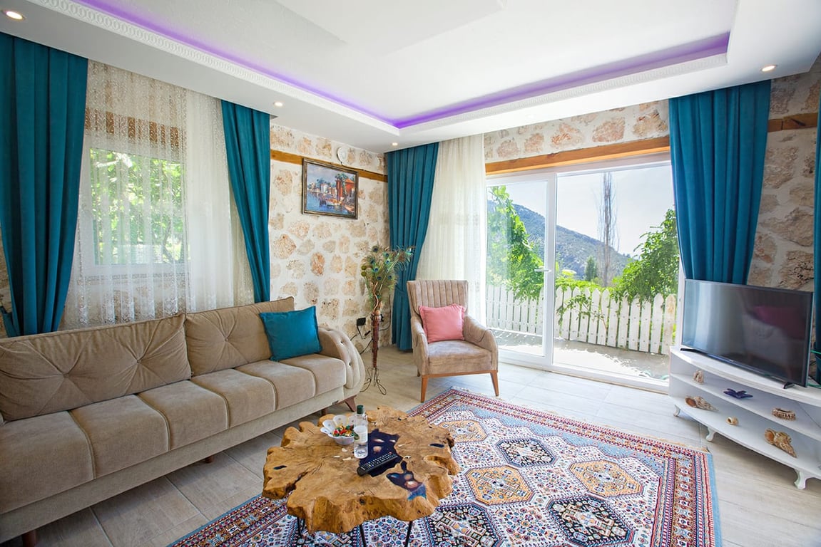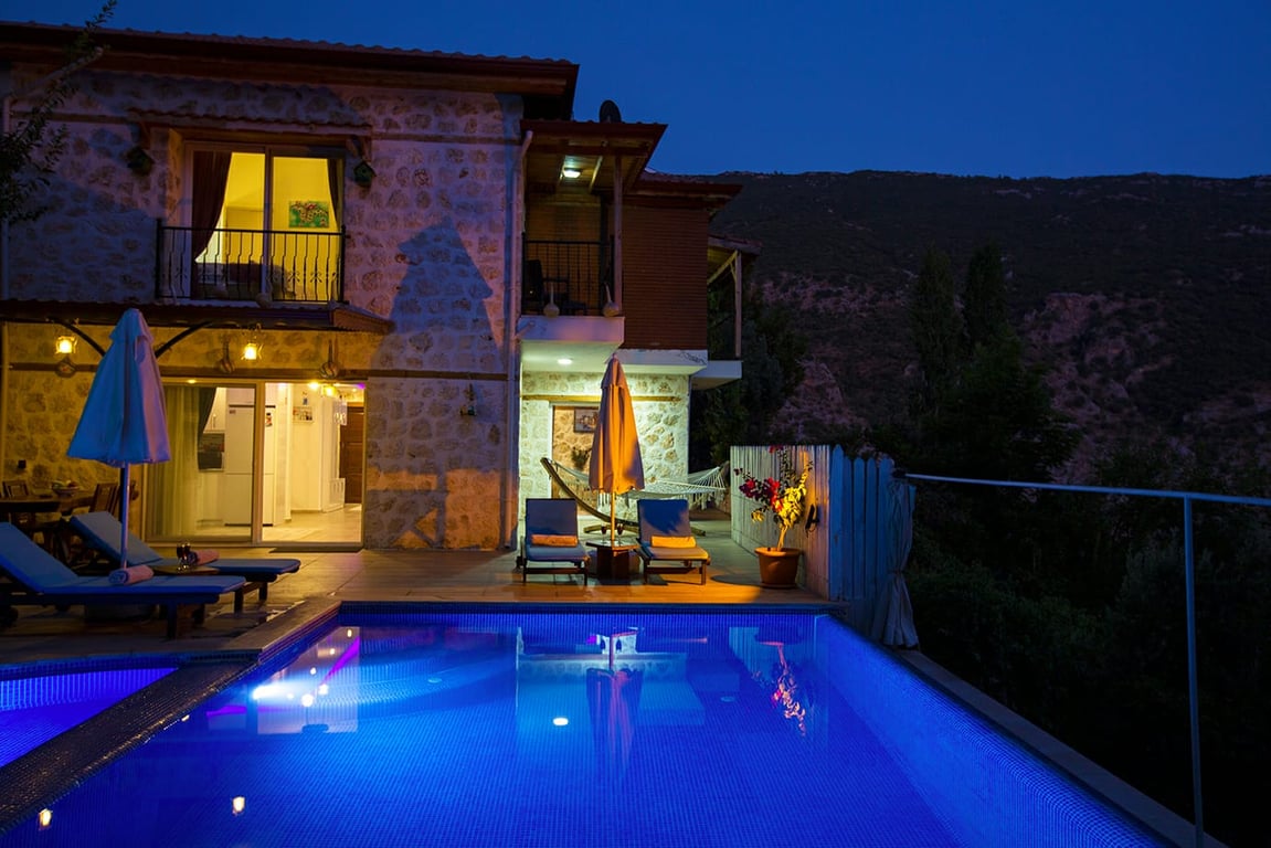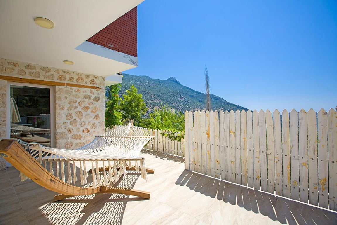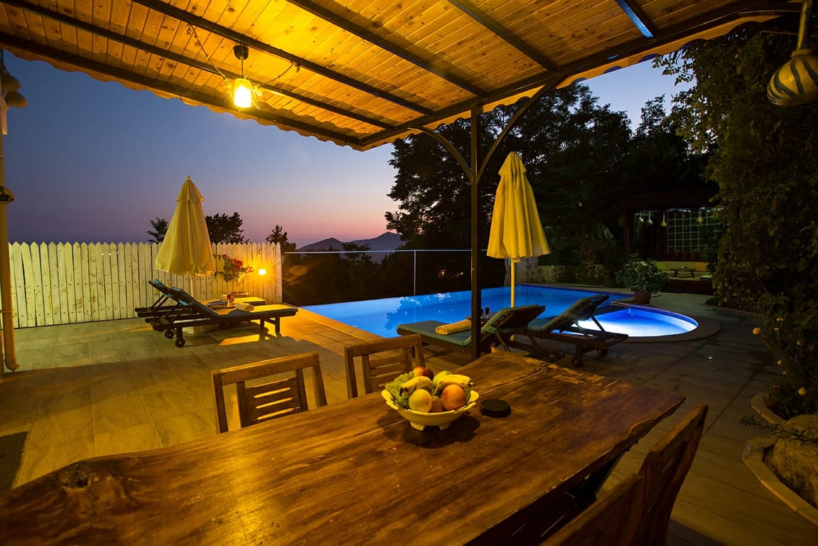 Villa Muar, Kalkan İslamlar bölgesinde konumlanmakta olan, yeşilliklerle kaplı doğa manzarasına hâkim kiralık villalarımız arasında yer almaktadır. Konforlu ve modern bir şekilde dizayn edilen villamızda 2 adet yatak odası bulunmakta olup, 4 kişiye konaklama imkânı sağlamaktadır. Yatak odalarından bir tanesinin içerisinde, tüm yılın vermiş olduğu yorgunluğu giderebileceğiniz jakuzi yer almaktadır. Havuz ve havuz terası korunaklı hale getirilen yazlık villamızı muhafazakâr aileler gönül rahatlığıyla tercih edebilirler. Hayallerinizin de ötesinde keyif dolu bir yazlık villada tatil için Villa Muar'ı tercih edebilirsiniz.