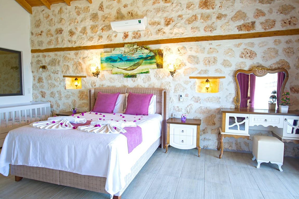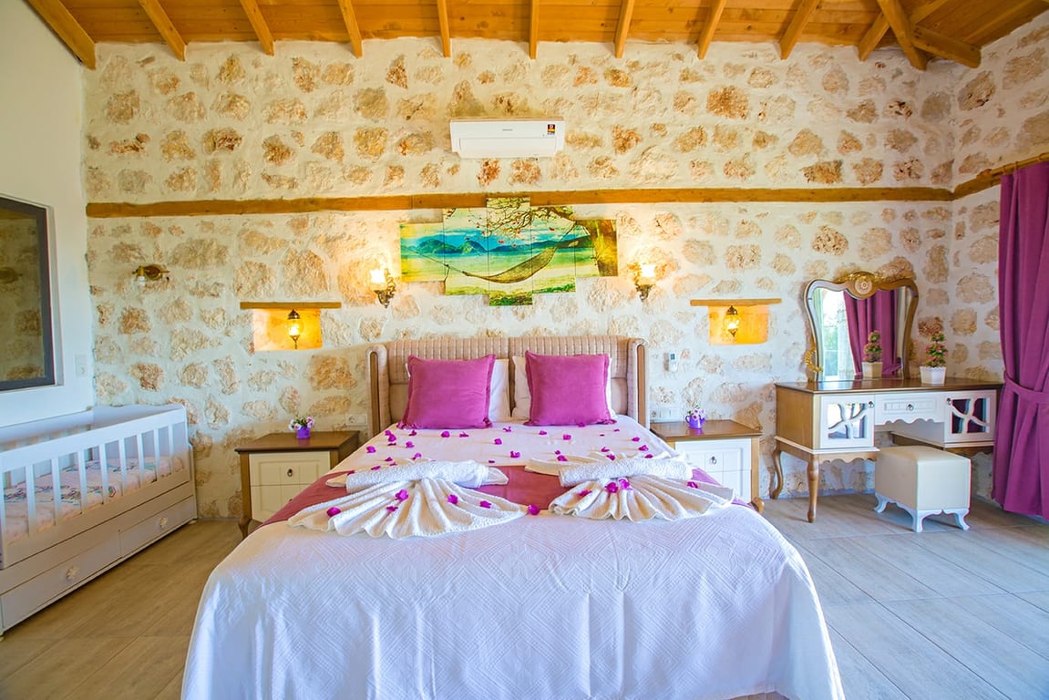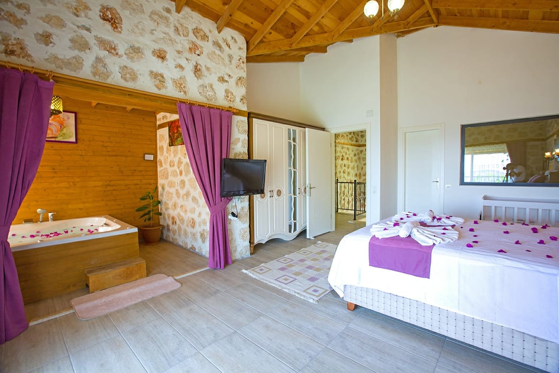 1-Çift kişilik yatak, banyo/WC, jakuzi ve bebek yatağı bulunmaktadır.