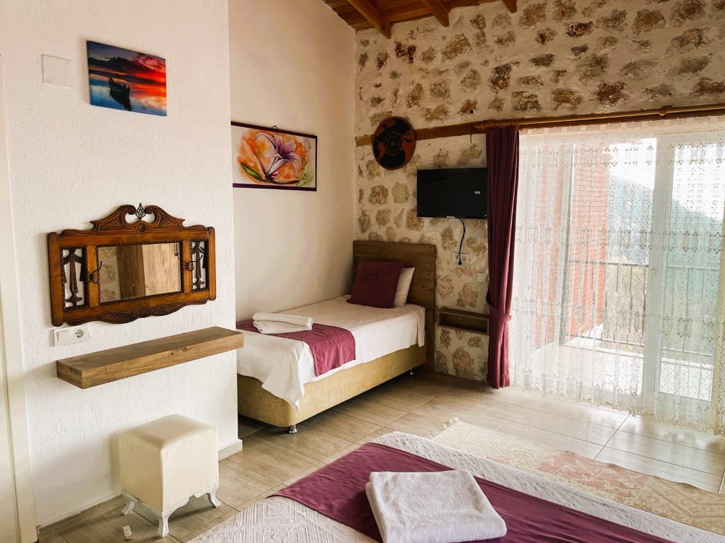 2-Çift kişilik yatak, 1 adet tek kişilik yatak ve banyo/WC bulunmaktadır.