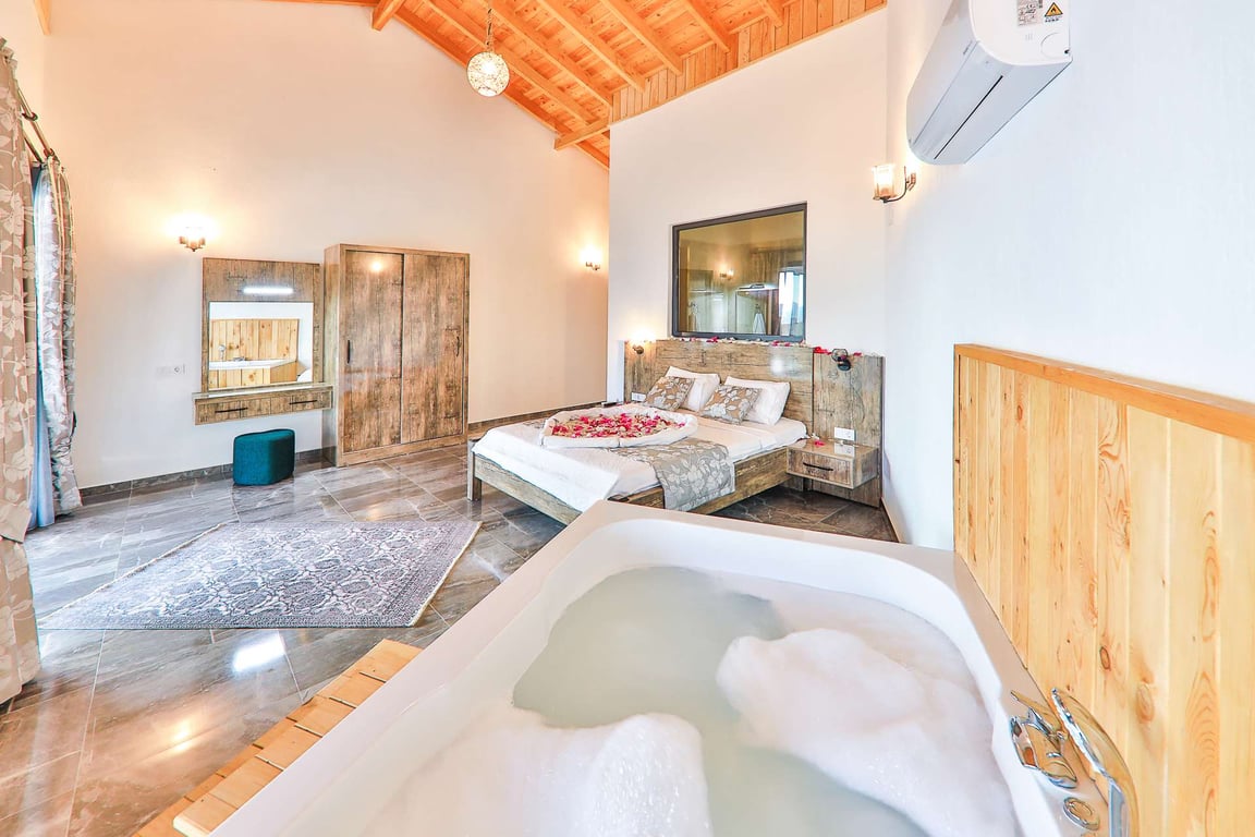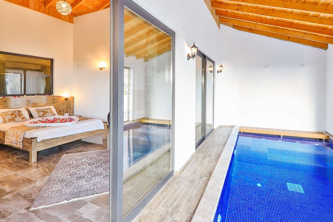 Yatak odalarından birinde yer alan jakuzi, misafirlerimize tüm yılın yorgunluğunu atma fırsatı sunarken; kış aylarında tatil yapmak isteyenler için özel olarak tasarlanmış kapalı ısıtma havuzu ve çocuk havuzu bulunmaktadır. Korunaklı havuz ve havuz terası sayesinde, villamız muhafazakar aileler için de ideal bir seçenektir.