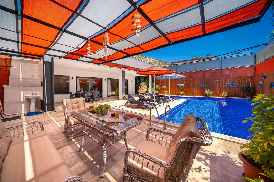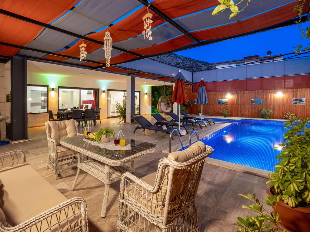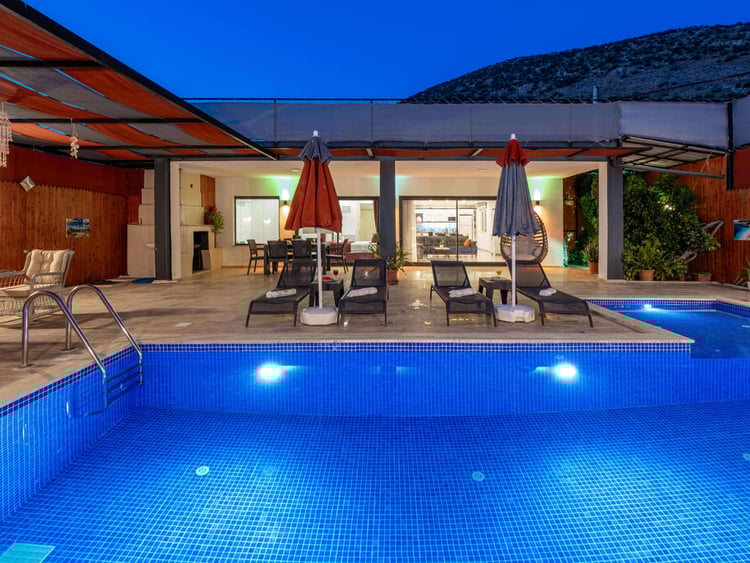 Havuzlu Kiralık Villa Doğa İle İç İçe Muhafazakar Kiralık Villa Kaş Kiralık Villa Antalya Kiralık Villa Jakuzili Balayı Kiralık Villa Muhafazakar Villa Balayı Villası Dağ Manzaralı Kalkan Kiralık Villa