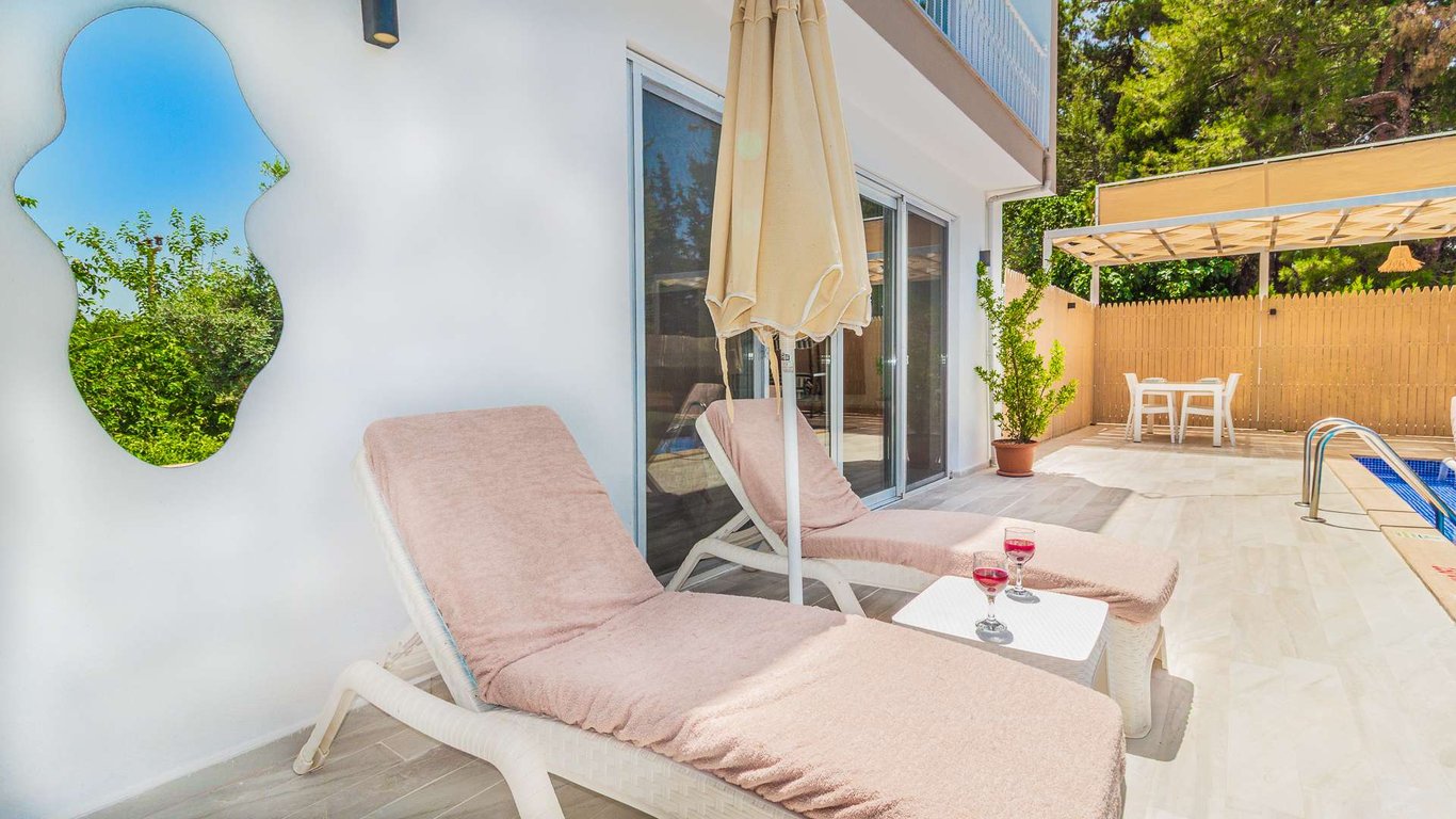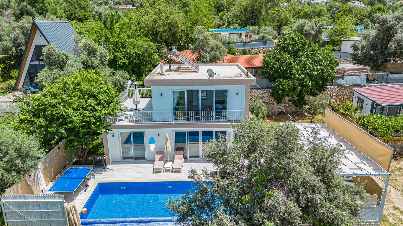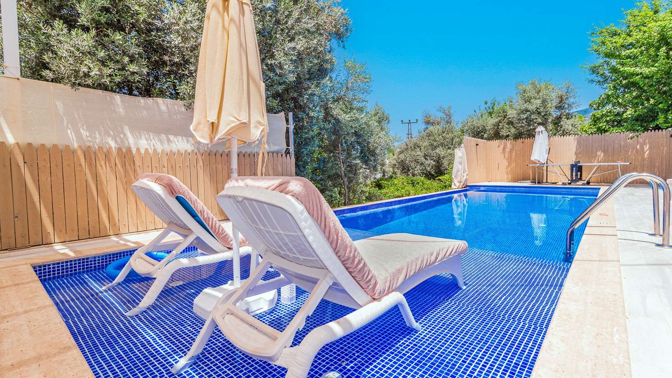 Villa Netya, Kalkan Üzümlü bölgesinde konumlanmakta olup yeşilliklerle çevrili doğa manzarasına sahip kiralık villalarımız arasında yer almaktadır. Lüks ve modern bir şekilde dizayn edilen villamızda 2 adet yatak odası bulunmakta olup, 4 kişiye kadar konaklama imkânı sunmaktadır. Yatak odalarından birinde, yılın tüm yorgunluğunu atabileceğiniz jakuzi yer almaktadır. Havuz ve havuz terası korunaklı hâle getirilmiş olan villamız, muhafazakâr aileler tarafından gönül rahatlığıyla tercih edilebilir. Keyifli ve huzurlu bir tatil için Villa Netya’yı tercih edebilirsiniz.