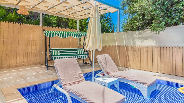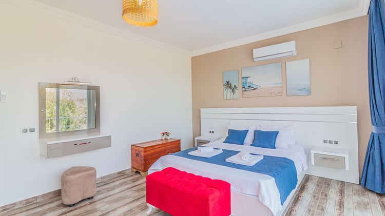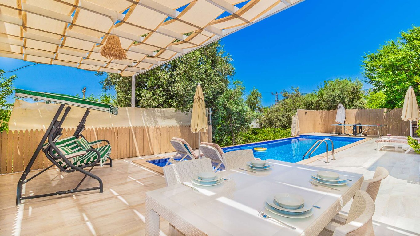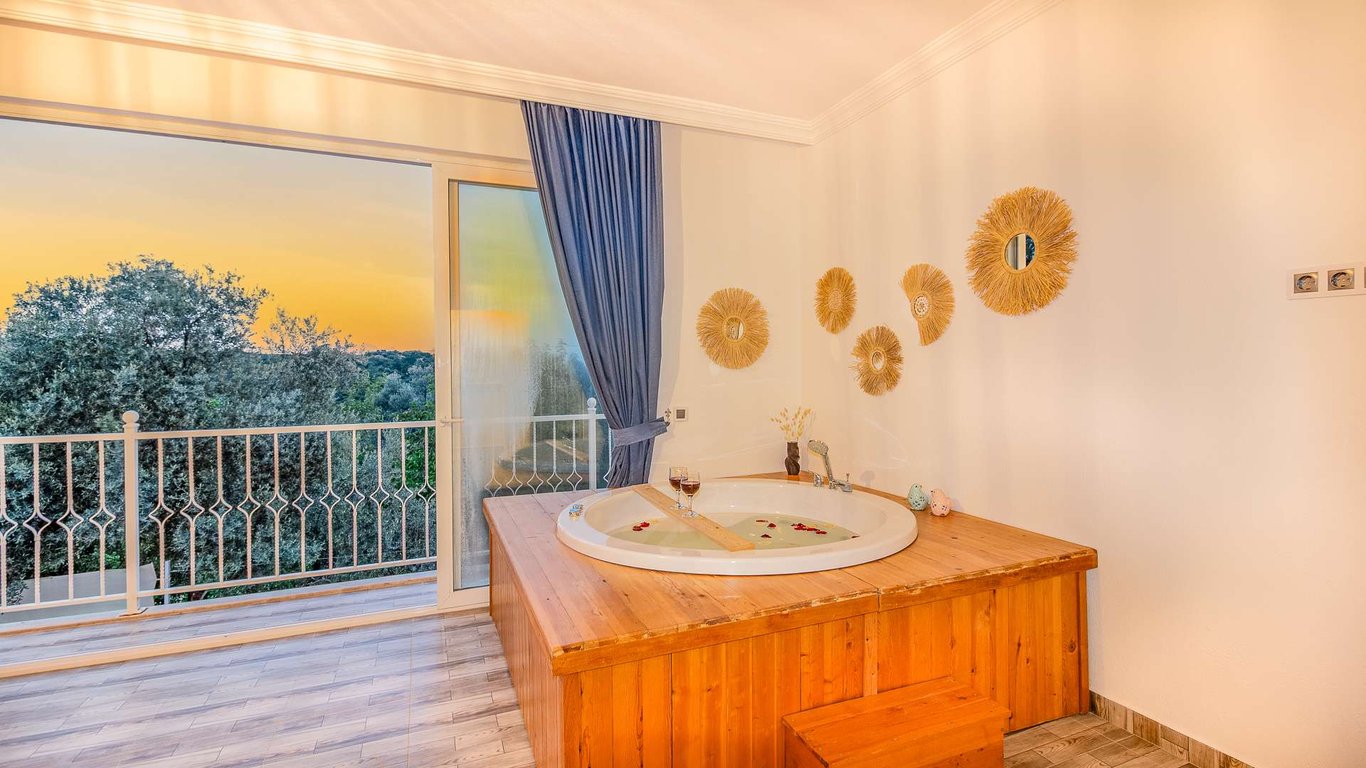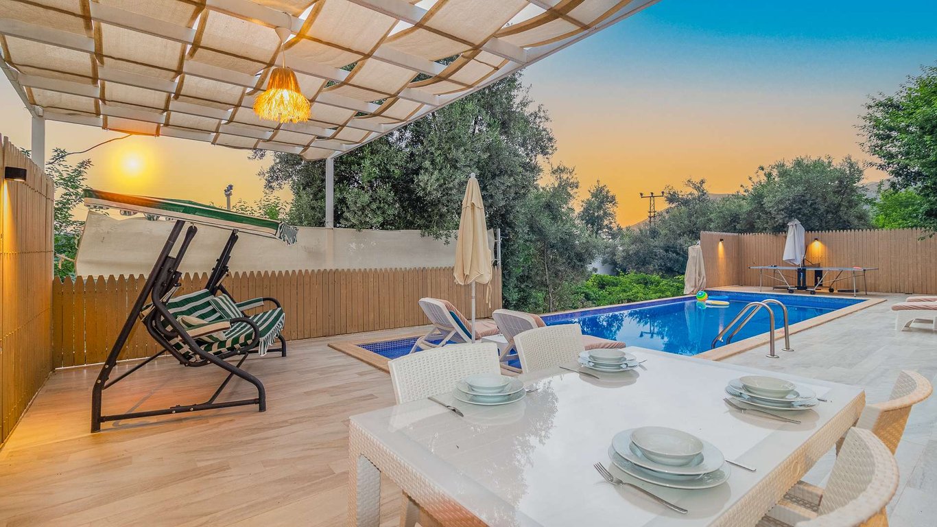 Villa Netya, Kalkan Üzümlü bölgesinde konumlanmakta olup yeşilliklerle çevrili doğa manzarasına sahip kiralık villalarımız arasında yer almaktadır. Lüks ve modern bir şekilde dizayn edilen villamızda 2 adet yatak odası bulunmakta olup, 4 kişiye kadar konaklama imkânı sunmaktadır. Yatak odalarından birinde, yılın tüm yorgunluğunu atabileceğiniz jakuzi yer almaktadır. Havuz ve havuz terası korunaklı hâle getirilmiş olan villamız, muhafazakâr aileler tarafından gönül rahatlığıyla tercih edilebilir. Keyifli ve huzurlu bir tatil için Villa Netya’yı tercih edebilirsiniz.