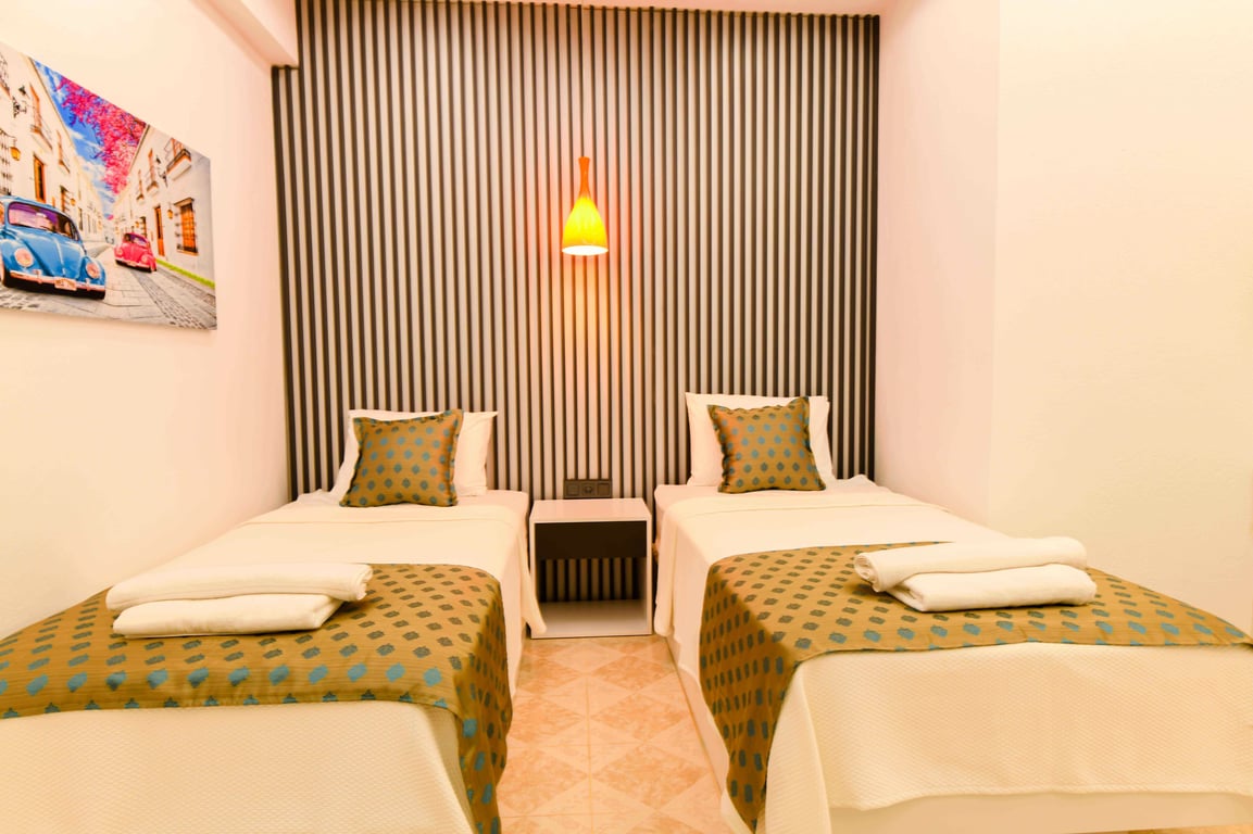 2-İki adet tek kişilik yatak ve ortak kullanım banyo/WC bulunmaktadır.