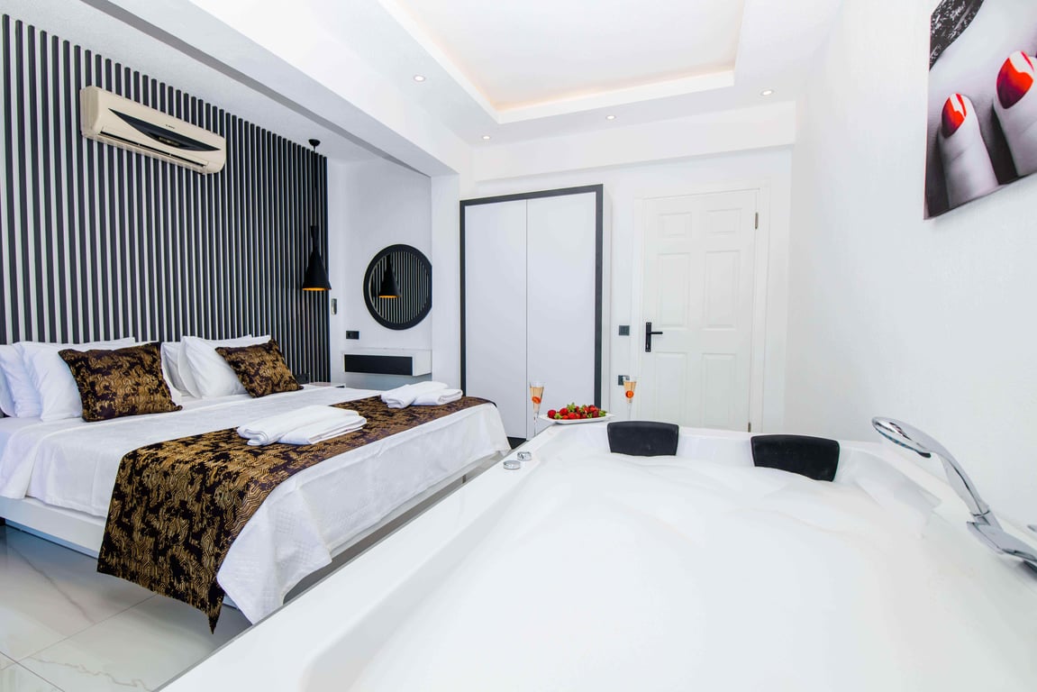 1-Çift kişilik yatak, ortak kullanım banyo/WC ve jakuzi bulunmaktadır.
