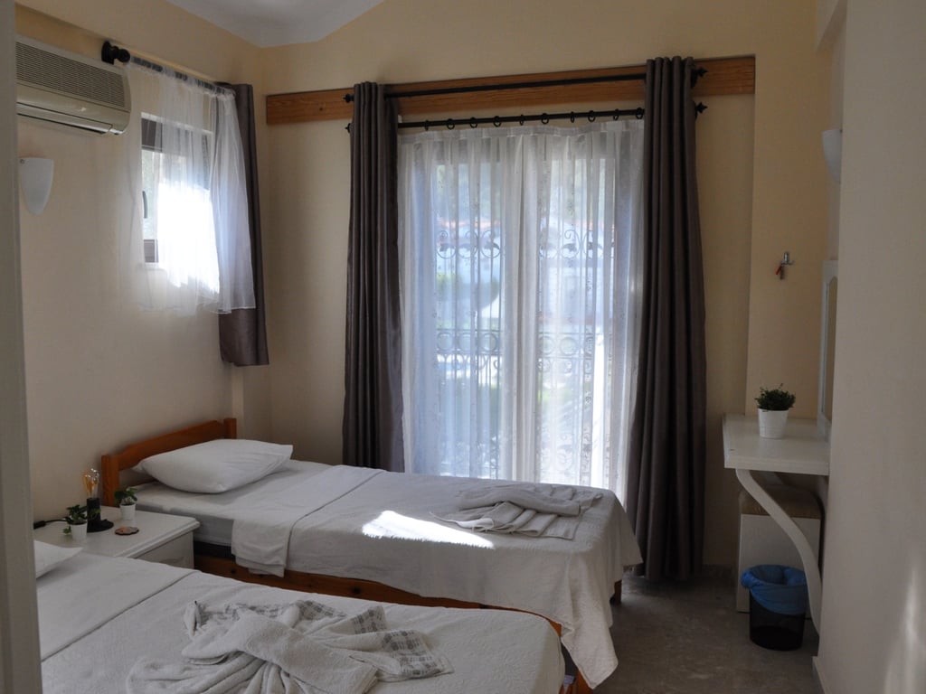 3-İki adet tek kişilik yatak ve ortak kullanım banyo/WC bulunmaktadır.