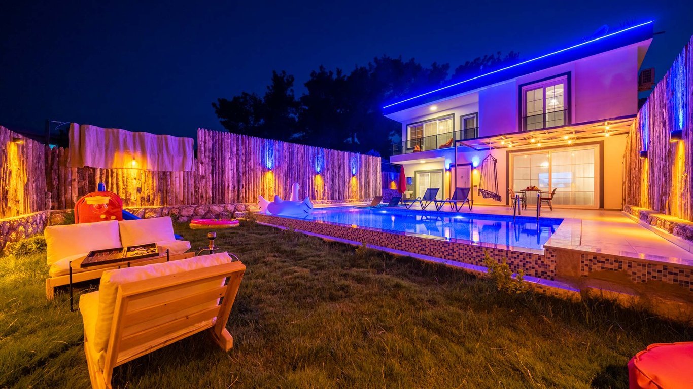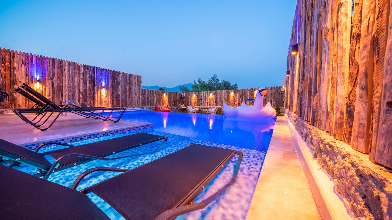 Villa Pine Garden, Seydikemer Karaköy bölgesinde konumlanmakta olan yeşilliklerle kaplı doğa manzarasına hakim kiralık villalarımız arasında yer almaktadır. Lüks ve modern bir şekilde dizayn edilen villamızda 2 adet yatak odası bulunmakta olup, 4 kişiye konaklama imkanı sağlamaktadır. Yatak odasının içerisinde tüm yılın vermiş olduğu yorgunluğu giderebileceğiniz jakuzi yer almaktadır. Havuz ve havuz terası korunaklı hale getirilen yazlık villamızı muhafazakar aileler gönül rahatlığı ile tercih edebilirler. Hayallerinizin de ötesinde keyif dolu bir yazlık villada tatil için Villa Pine Garden’ı tercih edebilirsiniz.