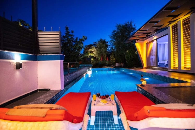 Havuzlu Kiralık Villa Doğa İle İç İçe Muhafazakar Kiralık Villa Kaş Kiralık Villa Antalya Kiralık Villa Jakuzili Balayı Kiralık Villa Muhafazakar Villa Balayı Villası Dağ Manzaralı Kalkan Kiralık Villa