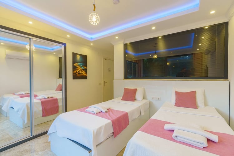 Villa Saha, Kalkan Sarıbelen bölgesinde konumlanmakta olan, yeşilliklerle kaplı doğa manzarasına hakim kiralık villalarımız arasında yer almaktadır. Konforlu ve modern bir şekilde dizayn edilen villamızda 2 adet yatak odası bulunmakta olup, 4 kişiye konaklama imkanı sağlamaktadır. Yatak odalarından bir tanesinin içerisinde jakuzi yer almaktadır; bu sayede tüm yılın vermiş olduğu yorgunluğu giderebilirsiniz. Havuz ve havuz terası korunaklı hale getirilen yazlık villamızı muhafazakar aileler gönül rahatlığı ile tercih edebilirler. Hayallerinizin de ötesinde keyif dolu bir yazlık villada tatil için Villa Saha’yı tercih edebilirsiniz.