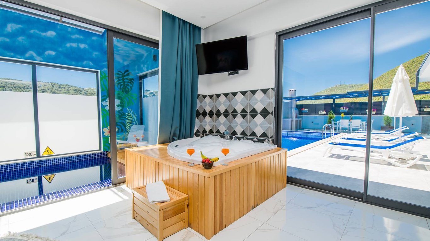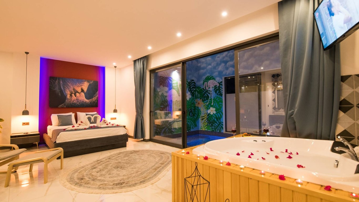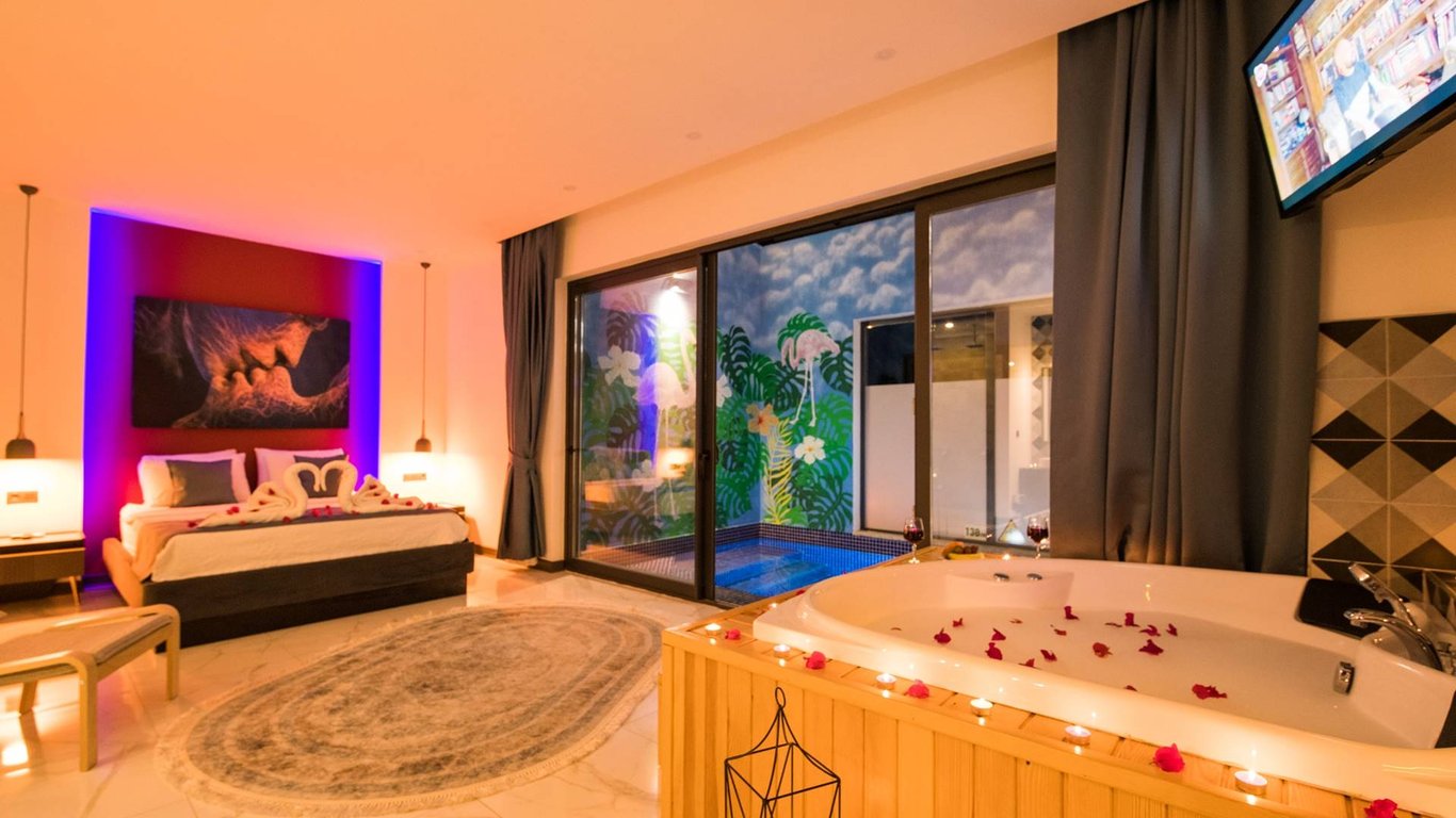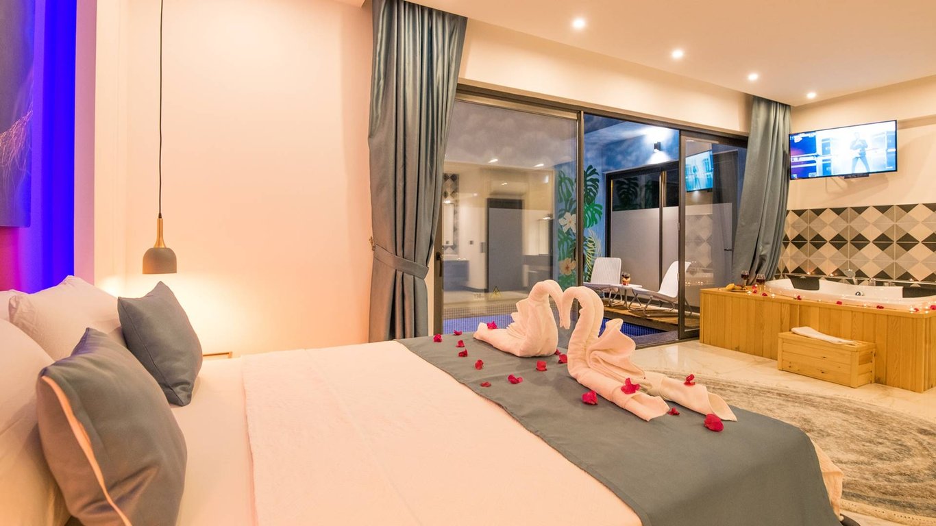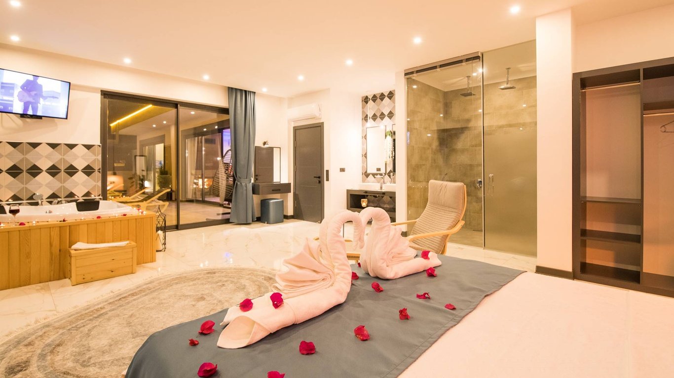 1-Çift kişilik yatak, banyo/WC, jakuzi ve bebek yatağı bulunmaktadır.