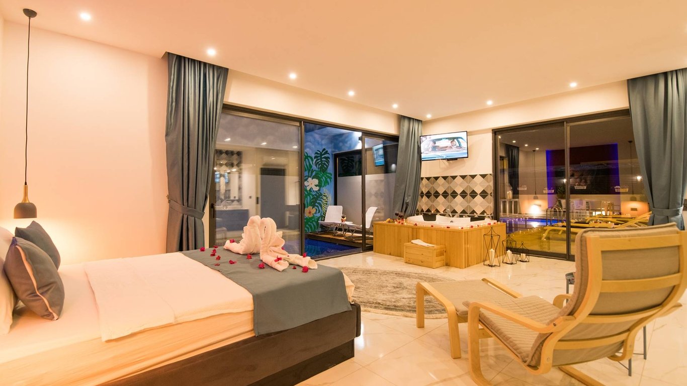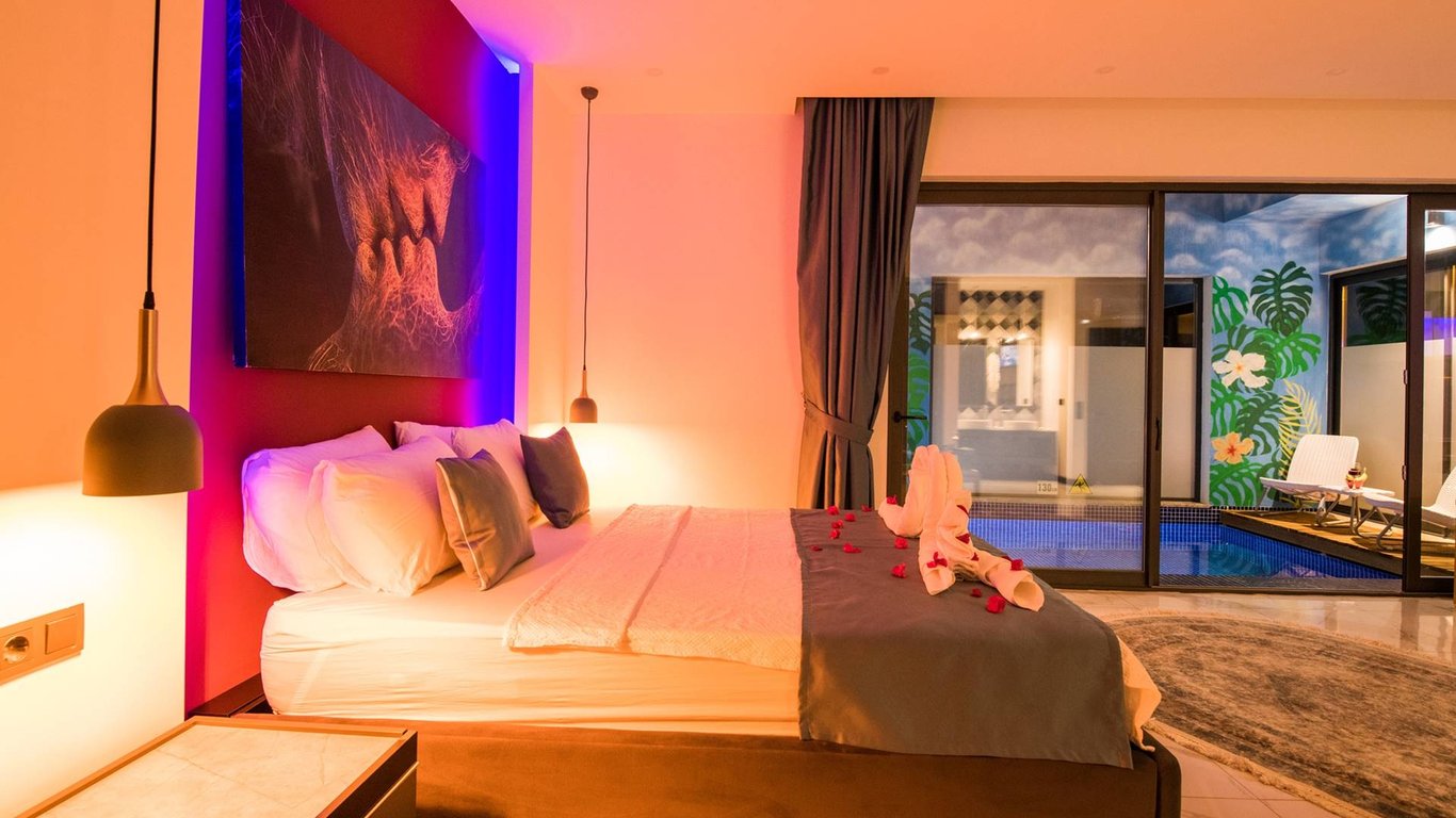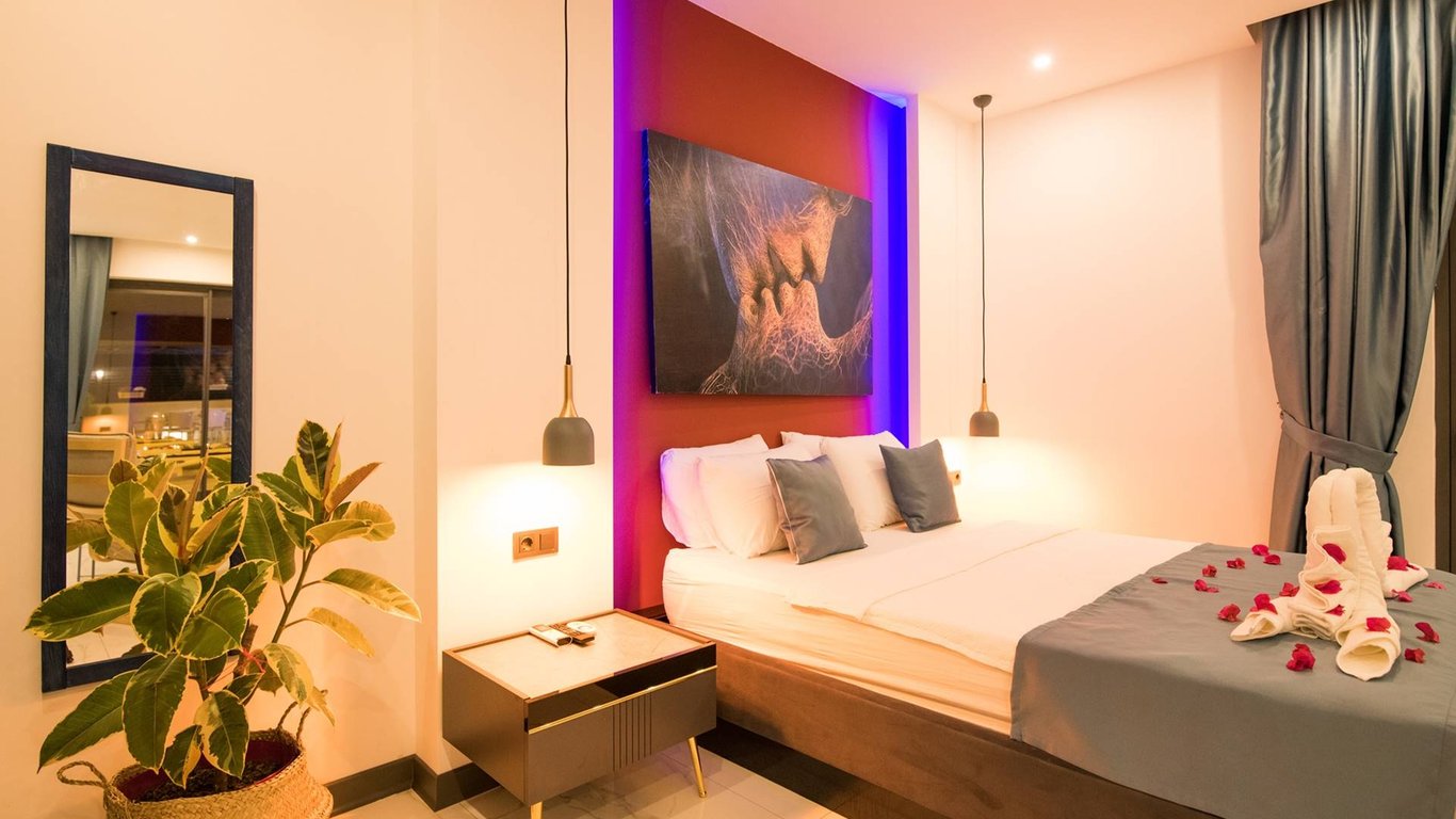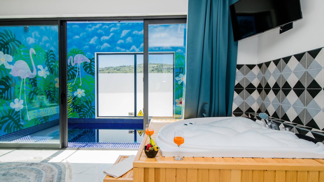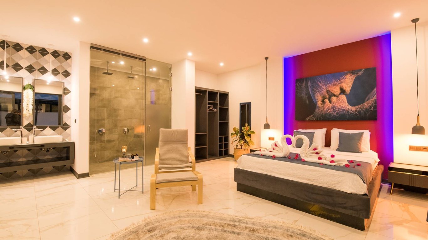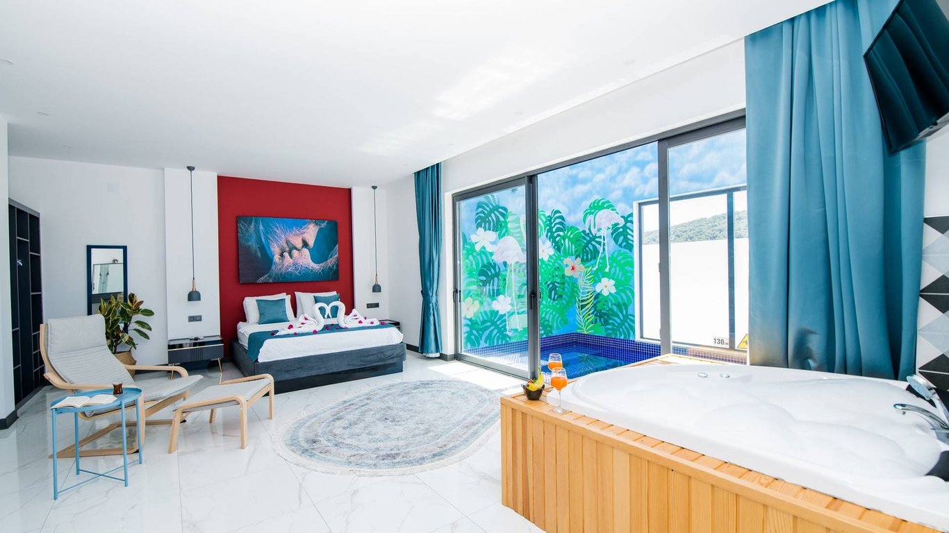1-Çift kişilik yatak, banyo/WC, jakuzi ve bebek yatağı bulunmaktadır.