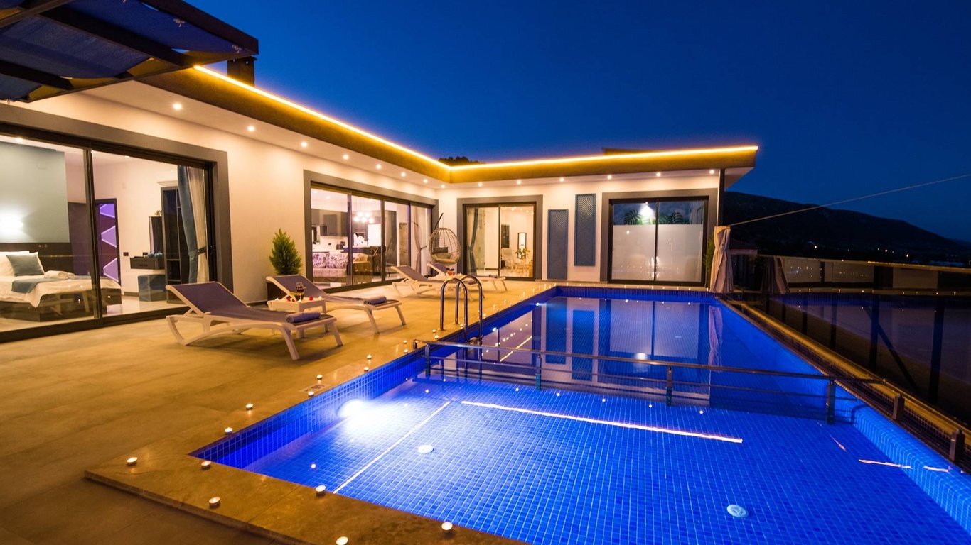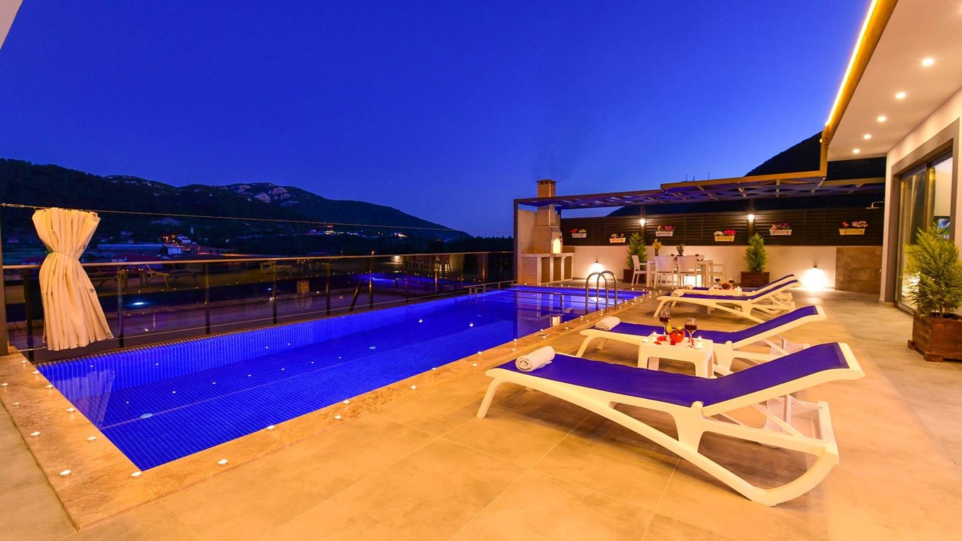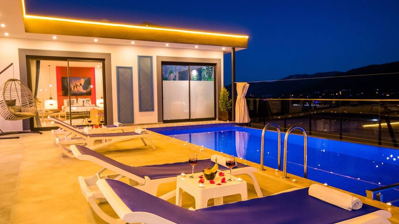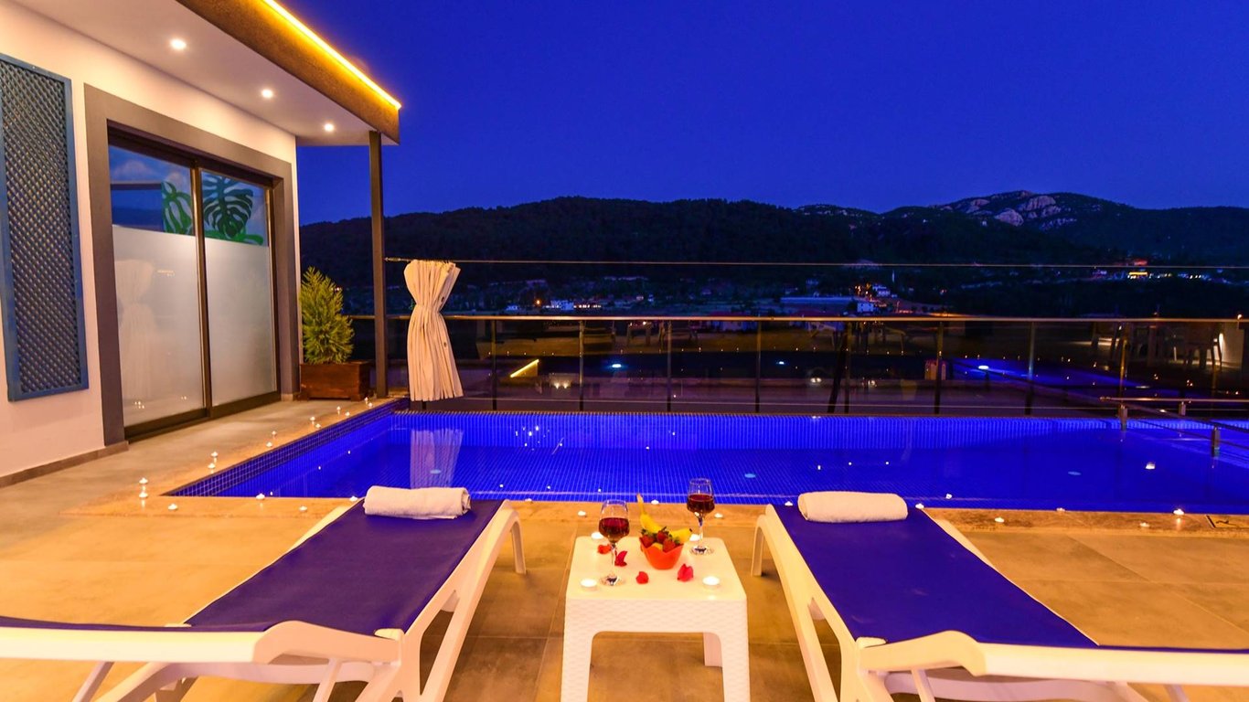 Villa Sedef, Kalkan Sarıbelen bölgesinde konumlanmakta olan, yeşilliklerle kaplı doğa manzarasına hakim kiralık villalarımız arasında yer almaktadır. Lüks ve modern bir şekilde dizayn edilen villamızda 2 adet yatak odası bulunmakta olup, 4 kişiye konaklama imkanı sağlamaktadır. Yatak odalarından bir tanesinin içerisinde, tüm yılın vermiş olduğu yorgunluğu giderebileceğiniz jakuzi yer almaktadır. Aynı zamanda kış aylarında tatil planı yapmak isteyen misafirlerimiz için kapalı ısıtmalı havuz yer almaktadır. Havuz ve havuz terası korunaklı hale getirilen yazlık villamız, muhafazakar aileler tarafından gönül rahatlığıyla tercih edilebilir. Hayallerinizin de ötesinde keyif dolu bir yazlık villada tatil için Villa Sedef’i tercih edebilirsiniz.