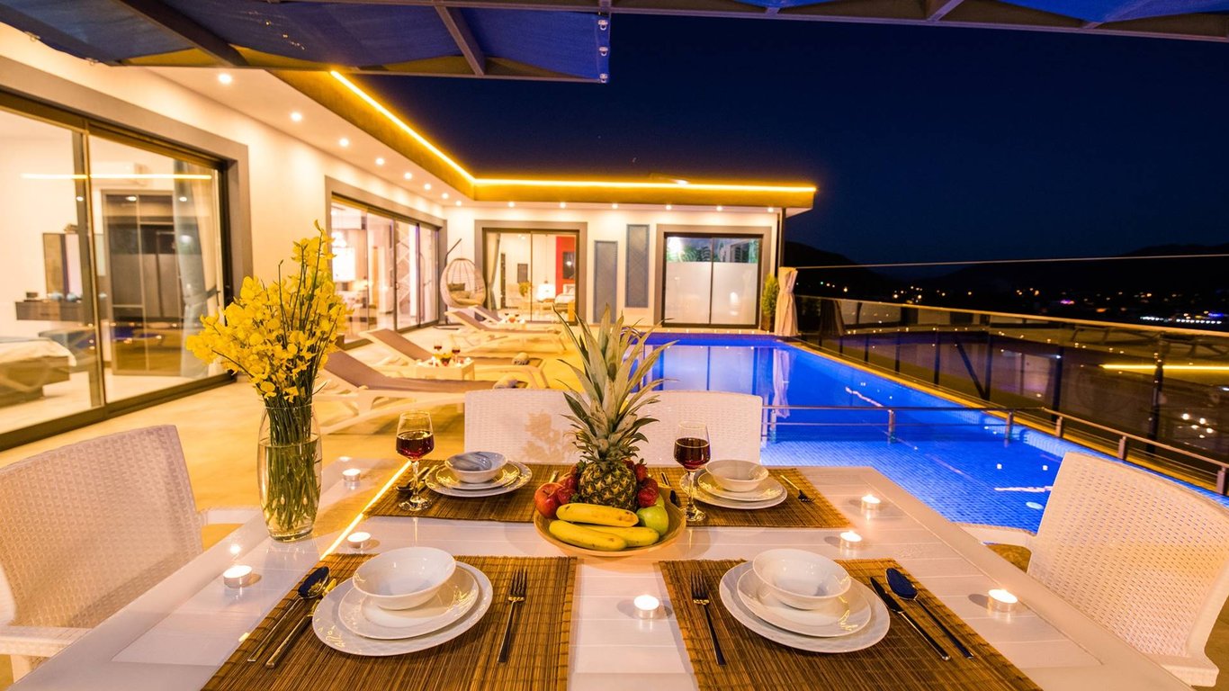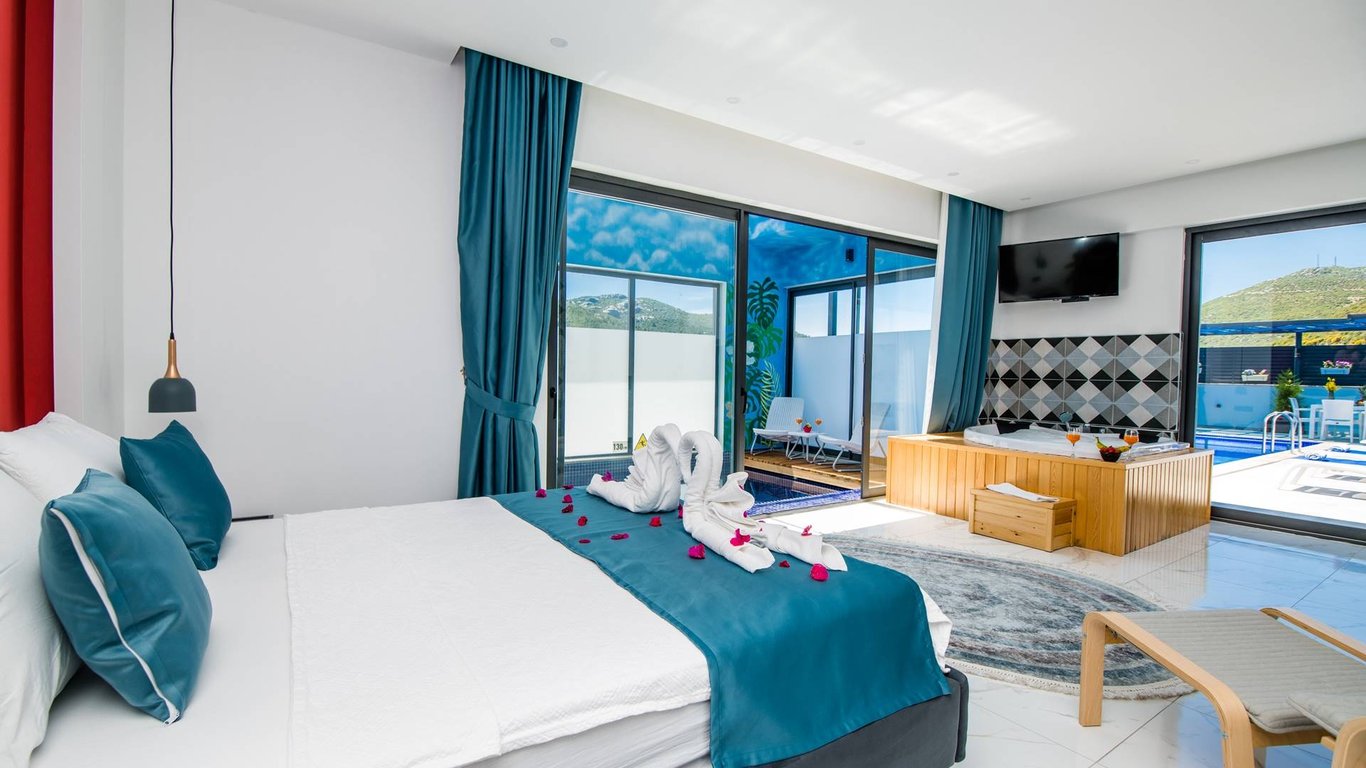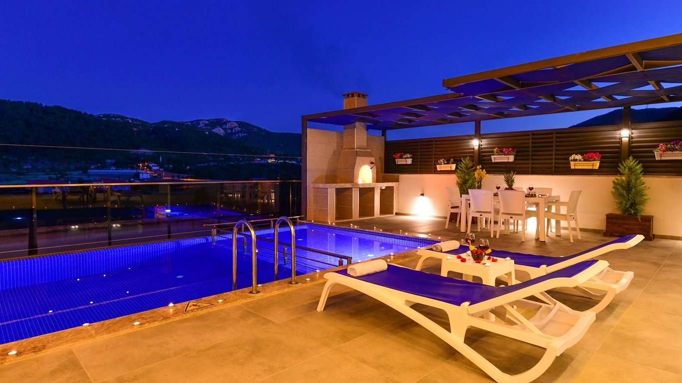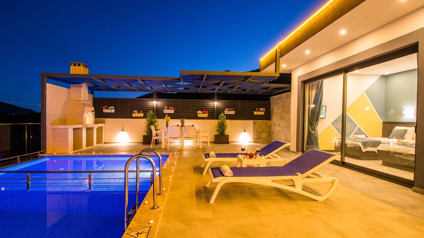 Villa Sedef, Kalkan Sarıbelen bölgesinde konumlanmakta olan, yeşilliklerle kaplı doğa manzarasına hakim kiralık villalarımız arasında yer almaktadır. Lüks ve modern bir şekilde dizayn edilen villamızda 2 adet yatak odası bulunmakta olup, 4 kişiye konaklama imkanı sağlamaktadır. Yatak odalarından bir tanesinin içerisinde, tüm yılın vermiş olduğu yorgunluğu giderebileceğiniz jakuzi yer almaktadır. Aynı zamanda kış aylarında tatil planı yapmak isteyen misafirlerimiz için kapalı ısıtmalı havuz yer almaktadır. Havuz ve havuz terası korunaklı hale getirilen yazlık villamız, muhafazakar aileler tarafından gönül rahatlığıyla tercih edilebilir. Hayallerinizin de ötesinde keyif dolu bir yazlık villada tatil için Villa Sedef’i tercih edebilirsiniz.
