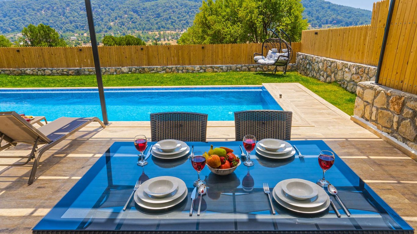 Havuzlu Kiralık Villa Doğa İle İç İçe Muhafazakar Kiralık Villa Kaş Kiralık Villa Antalya Kiralık Villa Jakuzili Balayı Kiralık Villa Muhafazakar Villa Balayı Villası Dağ Manzaralı Kalkan Kiralık Villa