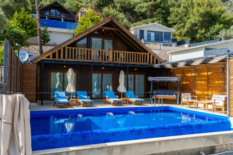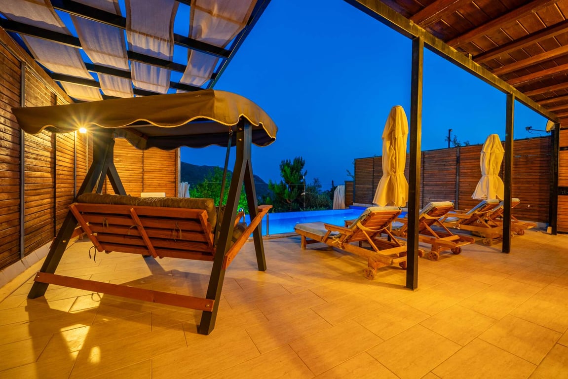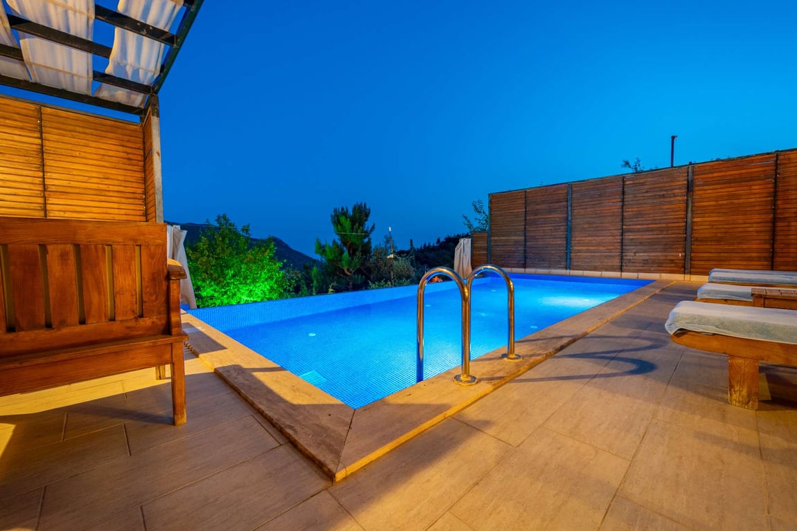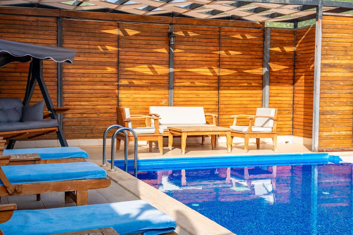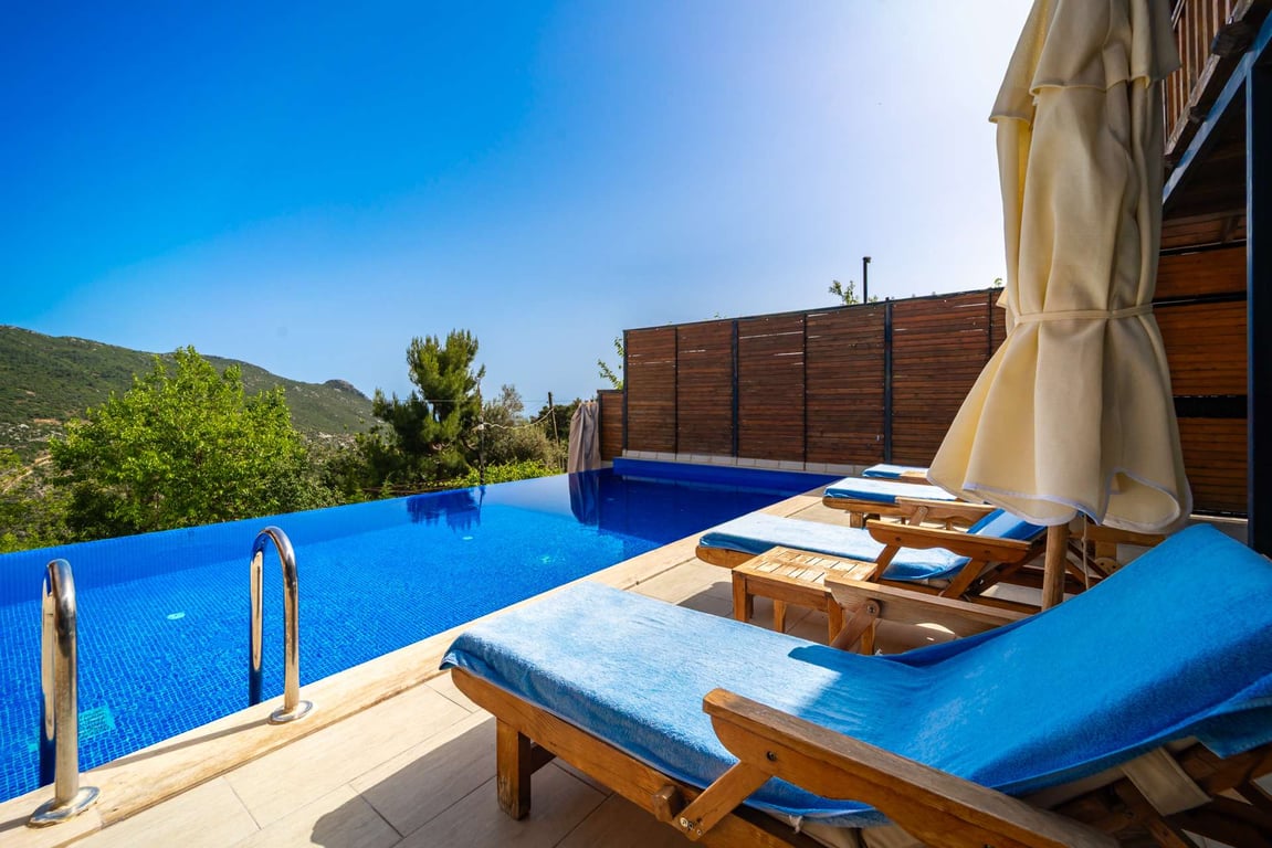 Villa Seyirtepe 2, Kalkan İslamlar bölgesinde konumlanmakta olan, yeşilliklerle kaplı doğa manzarasına hakim kiralık villalarımız arasında yer almaktadır. Aynı bölgede aynı tarzda inşa edilmiş ve dekore edilmiş 2 villamızdan bir tanesidir. Yana yana birlikte tatil yapmak isteyen misafirlerimiz için Villa Seyirtepe 1 ile birlikte kiralama yapılabilir. Konforlu ve modern bir şekilde dizayn edilen villamızda 2 adet yatak odası bulunmakta olup, 4 kişiye konaklama imkanı sağlamaktadır. Yatak odalarından bir tanesinin içerisinde tüm yılın vermiş olduğu yorgunluğu giderebileceğiniz jakuzi yer almaktadır. Havuz ve havuz terası korunaklı hale getirilen yazlık villamızı muhafazakar aileler gönül rahatlığı ile tercih edebilirler. Hayallerinizin de ötesinde keyif dolu bir yazlık villada tatil için Villa Seyirtepe 2’yi tercih edebilirsiniz.
