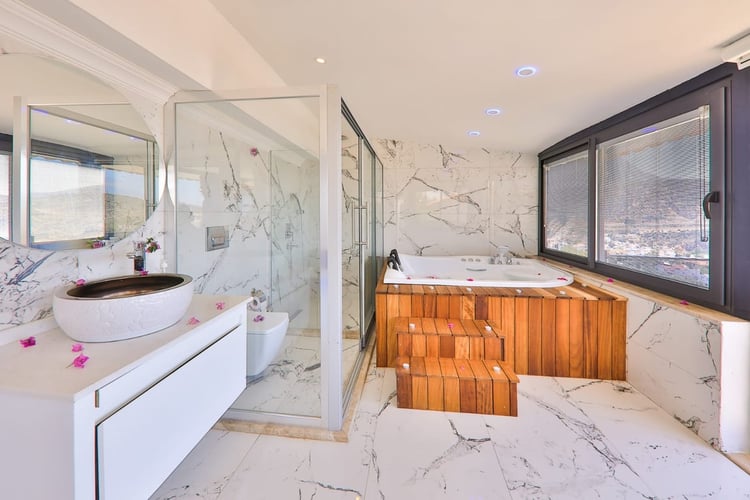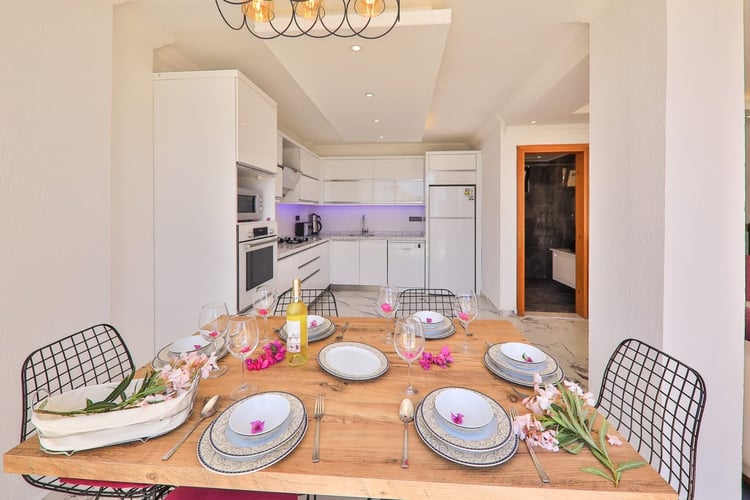 Villa Sunset Duo, Kalkan Ortaalan bölgesinde konumlanmakta olan, muhteşem deniz ve yeşilliklerle kaplı doğa manzarasına hâkim kiralık villalarımız arasında yer almaktadır. Lüks ve modern bir şekilde dizayn edilen villamızda 3 adet yatak odası bulunmakta olup, 6 kişiye konaklama imkânı sağlamaktadır. Yatak odalarından bir tanesinin içerisinde, tüm yılın vermiş olduğu yorgunluğu giderebileceğiniz jakuzi yer almaktadır. Hayallerinizin de ötesinde keyif dolu bir yazlık villada tatil için Villa Sunset Duo’yu tercih edebilirsiniz.